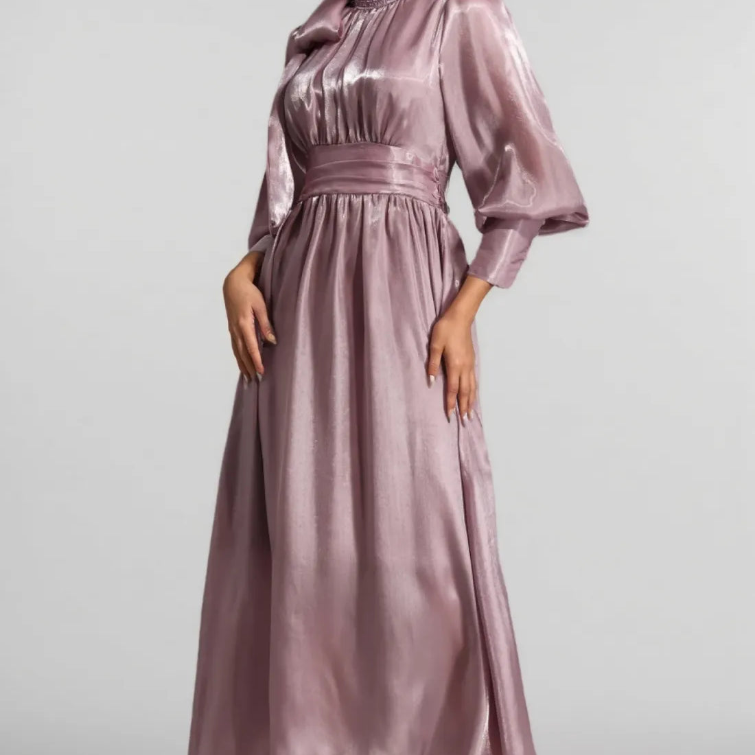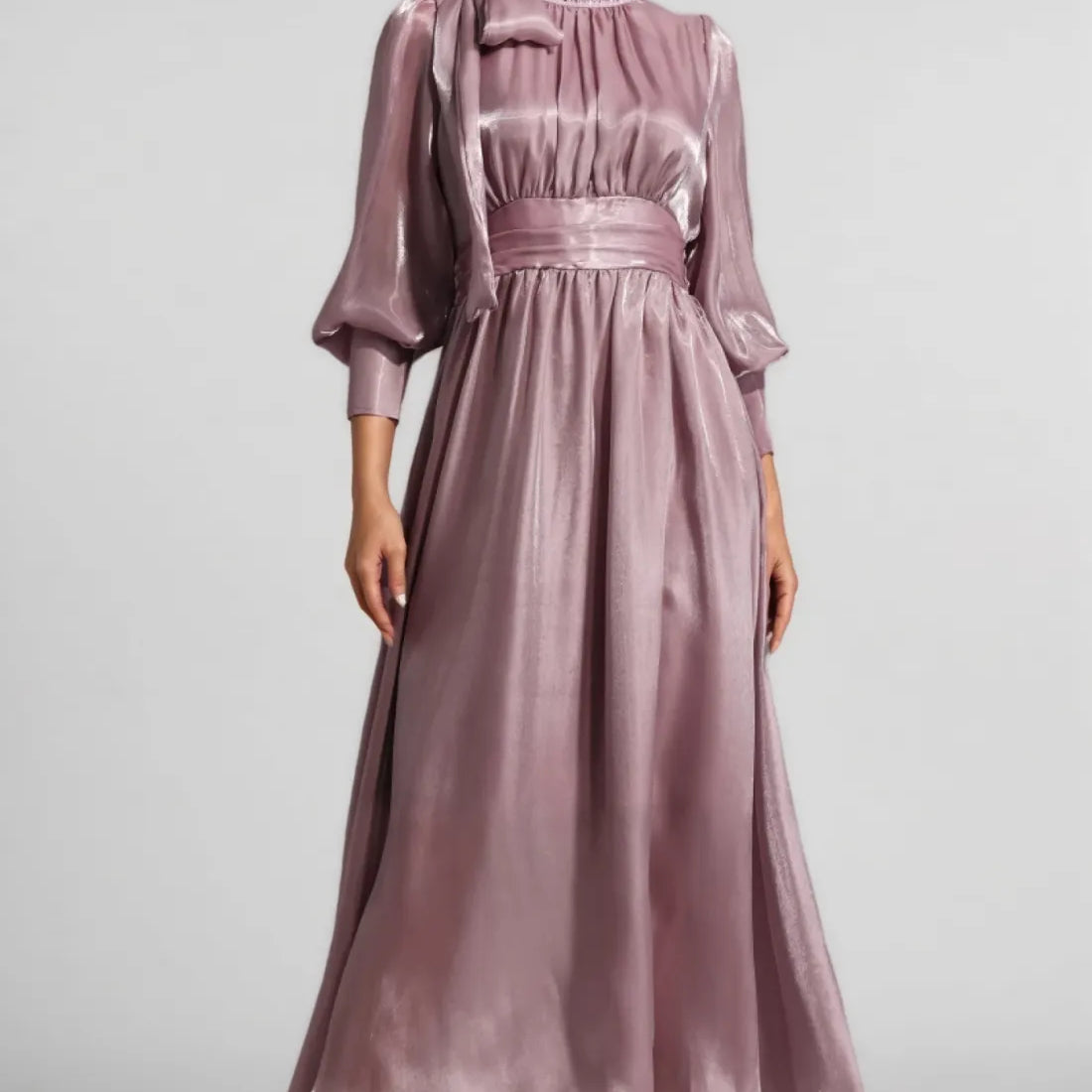 Ik wil een blije vrouw met een mooie jurk in beige achtergrond tinten