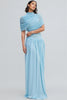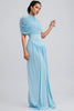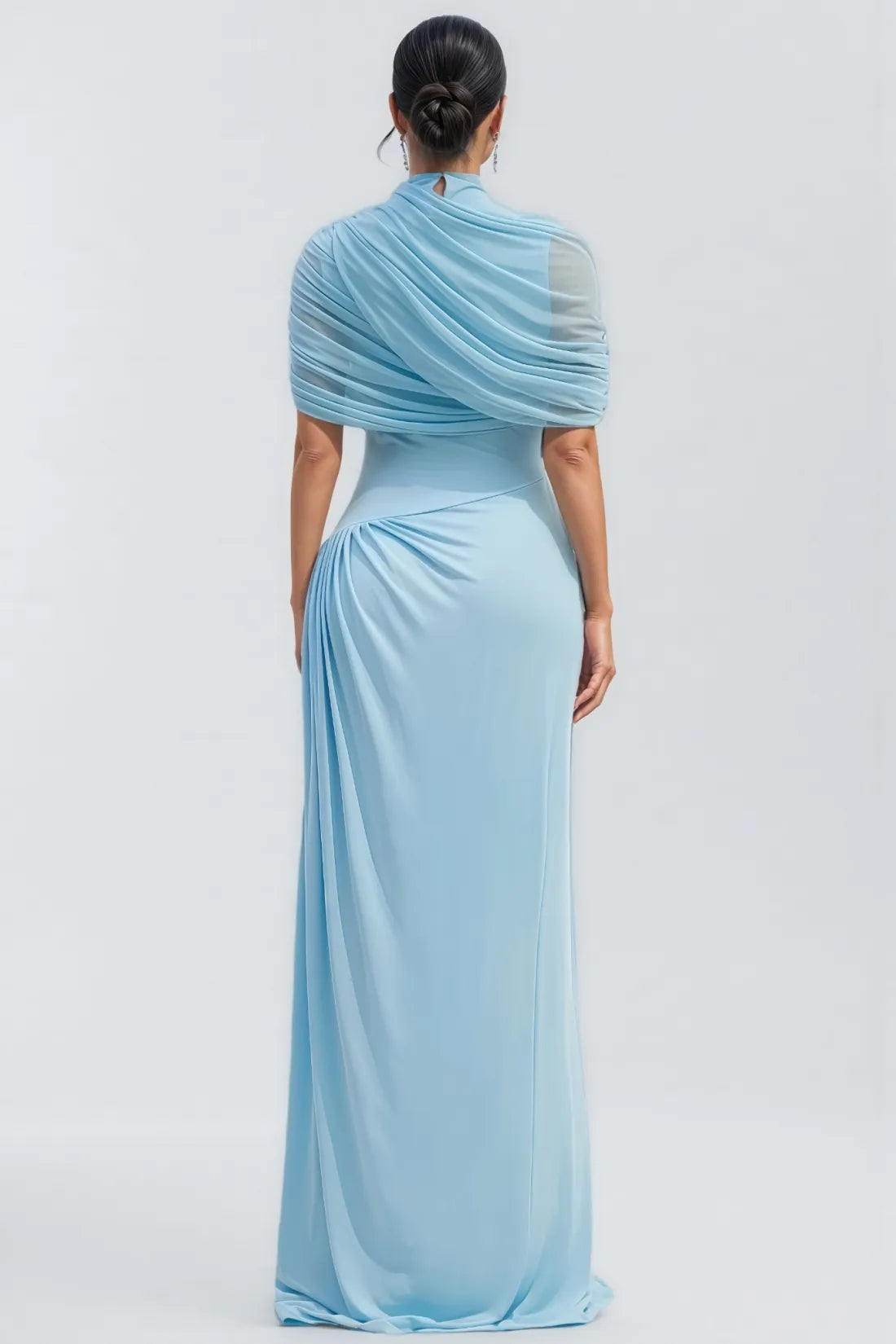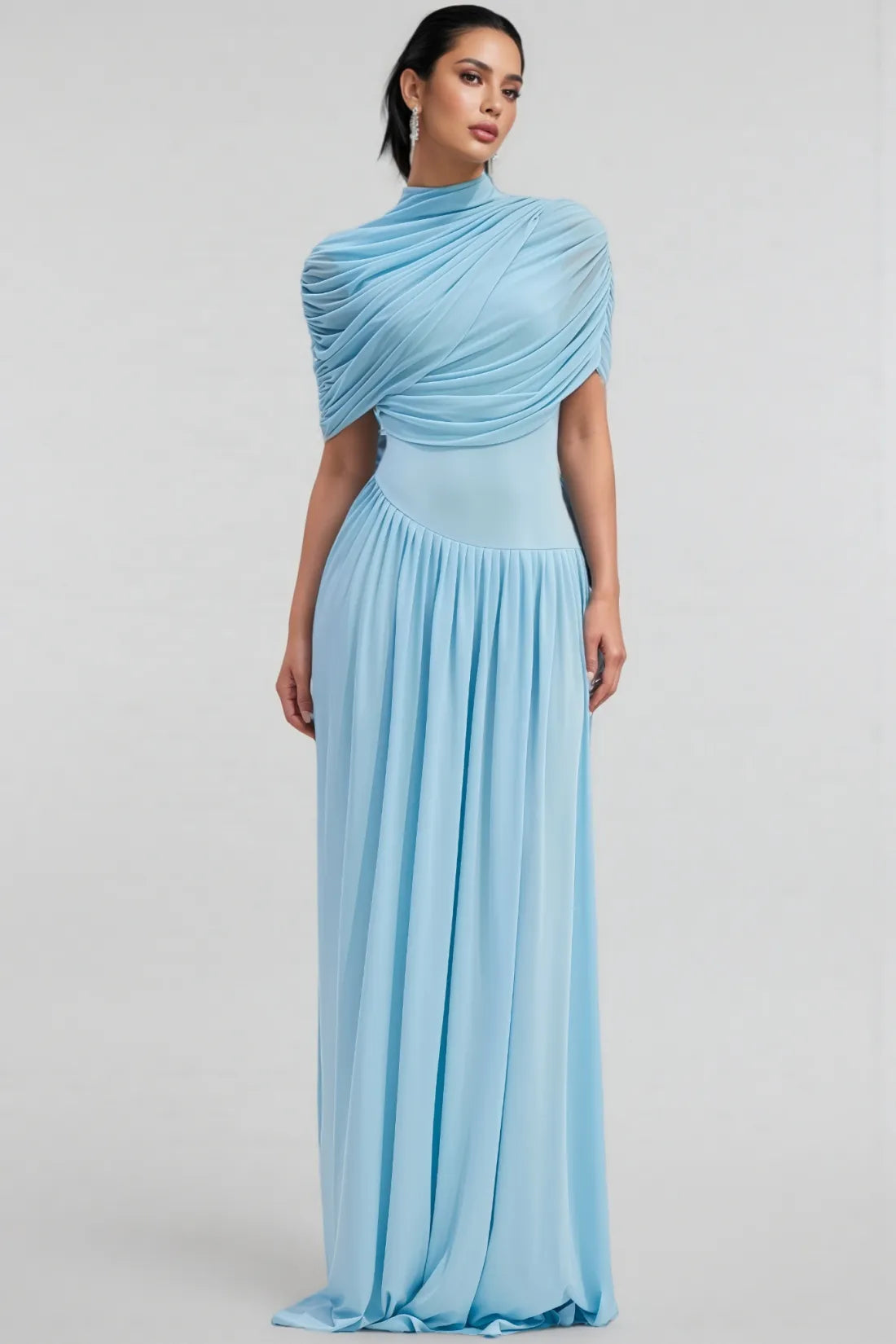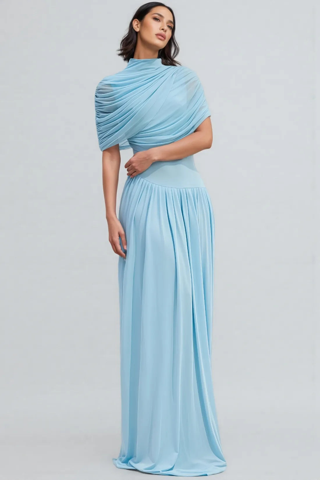 Vailtry Blue Shawl-Style Pleated Maxi Dress