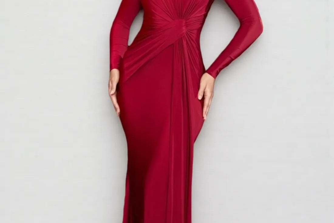 Vailtry Blue Shawl-Style Pleated Maxi Dress
