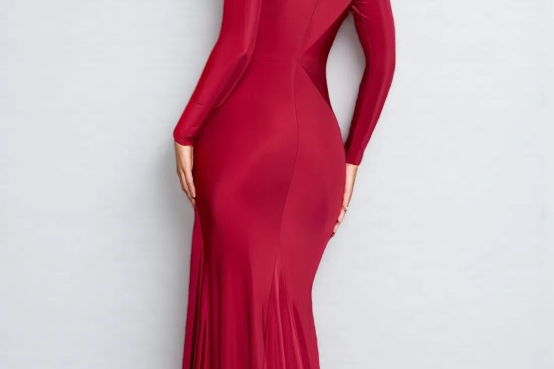 Layra Solid Colour Stand Collar Midi Dress-Red