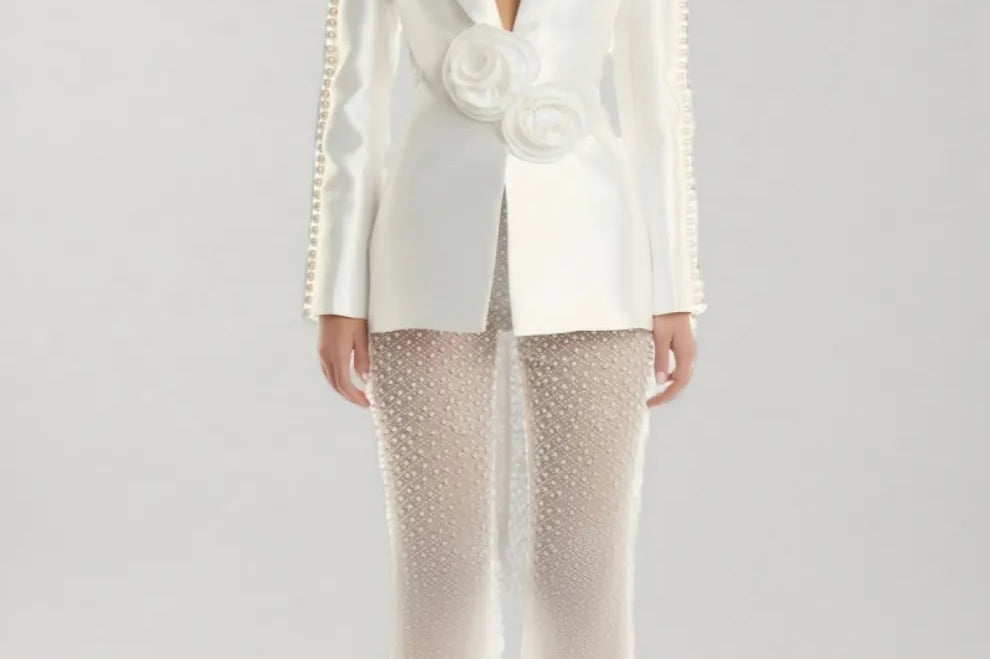 Fiorlk Beige 3D Flower Suit Two-Piece Set