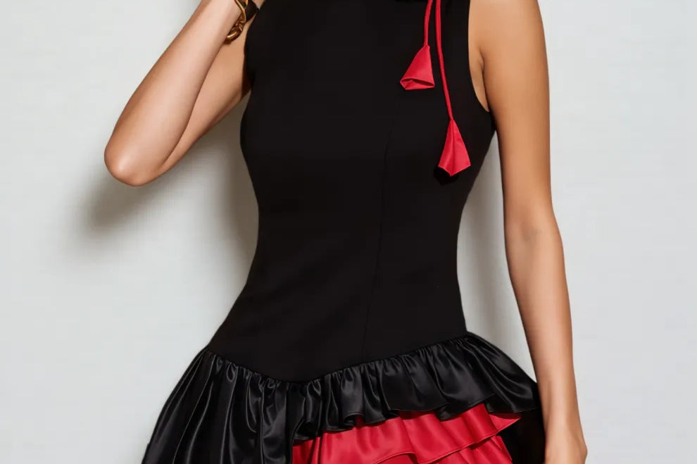 Daphne 3D Floral High Neck Sleeveless Maxi Dress-Black