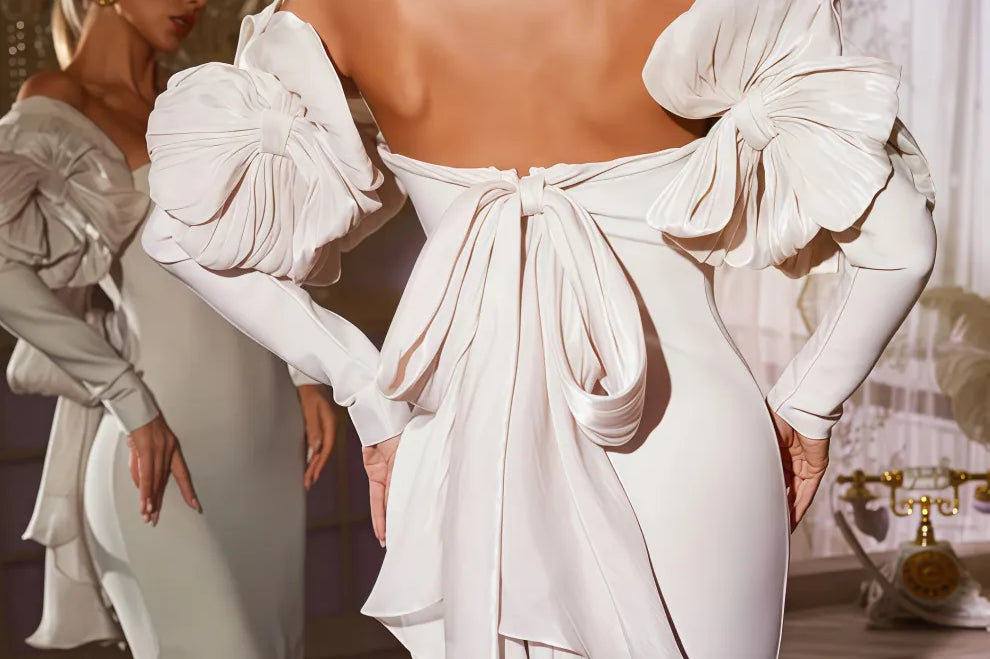 Eiral Beige Off Shoulder Flower Bandage Midi Dress