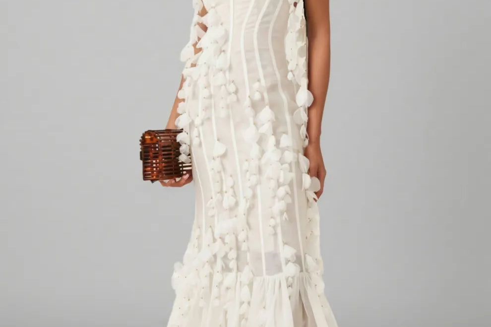 Evara Light Apricot 3D Floral Maxi Dress Set