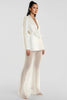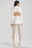 Ik wil een blije vrouw met een mooie jurk in beige achtergrond tinten