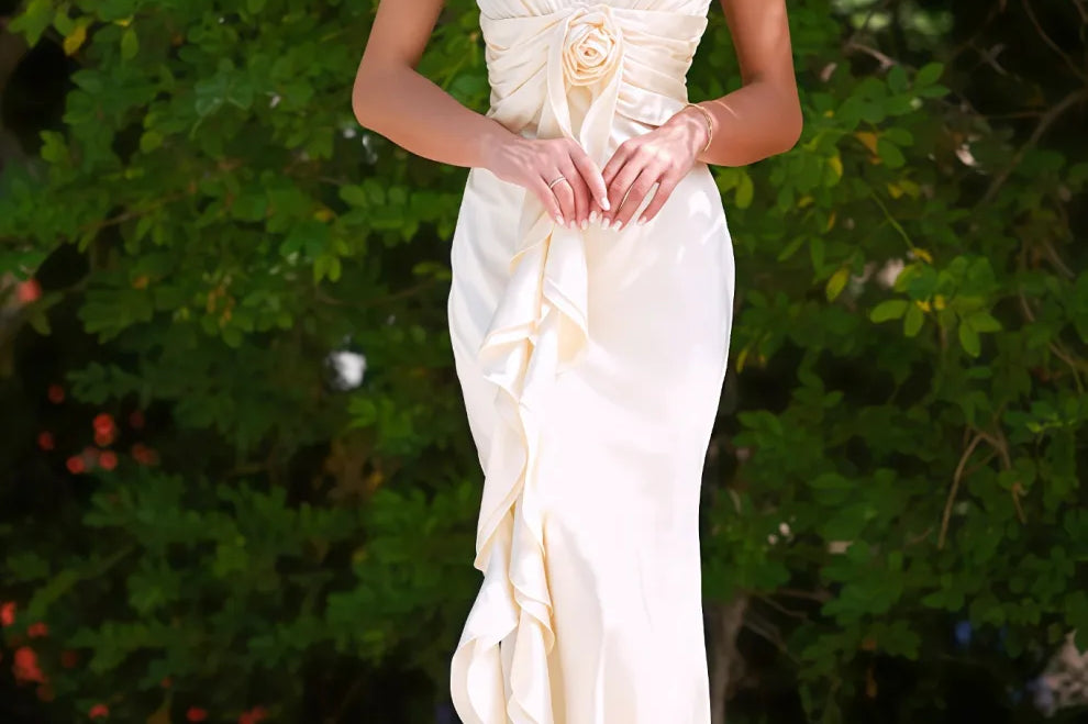 Alreem Pink Strapless 3D Floral Maxi Dress