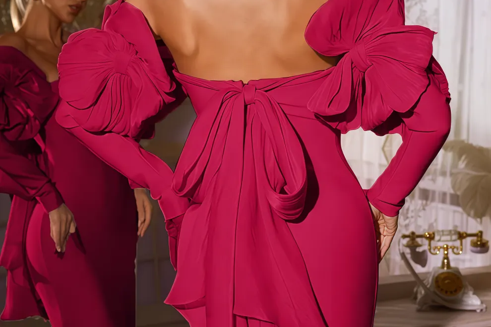 Trilacd Off Shoulder Flower Bandage Midi Dress
