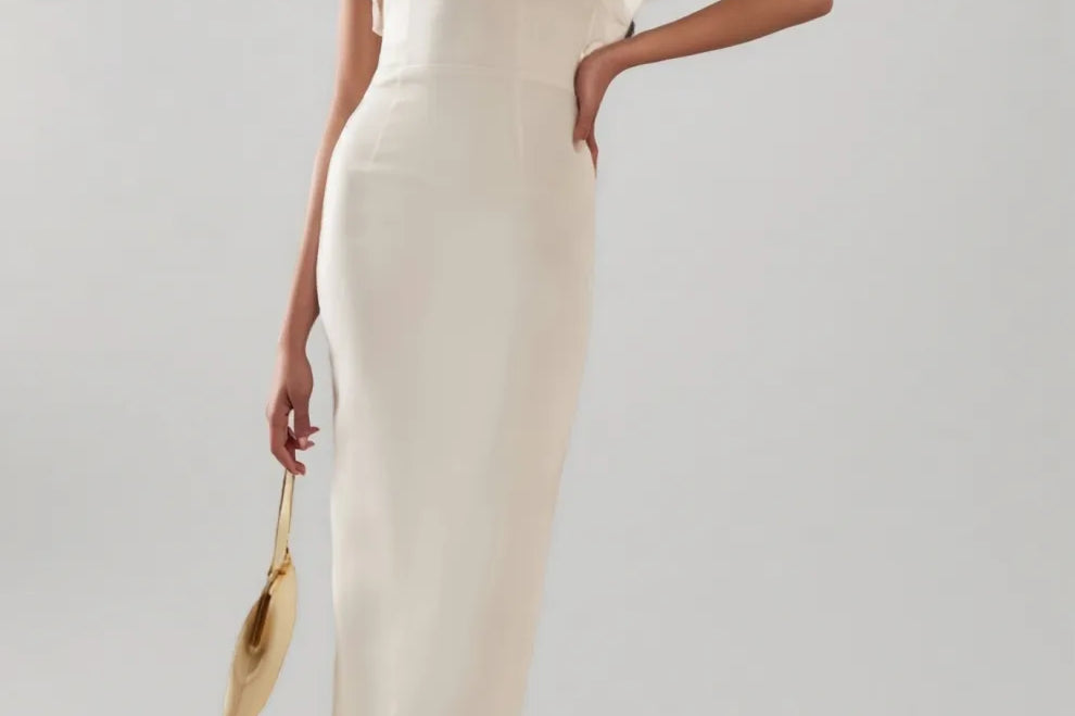 Zaretp White Ruffled Silk Midi Dress