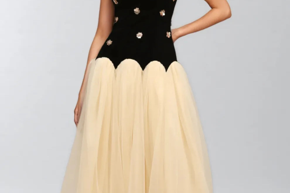 Halcylt Sleeveless Sequin Flowers Maxi Dress