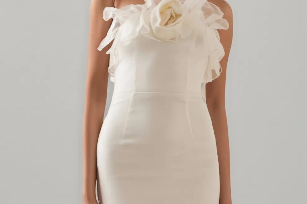 Zellk One Shoulder 3D Floral Bandage Maxi Dress