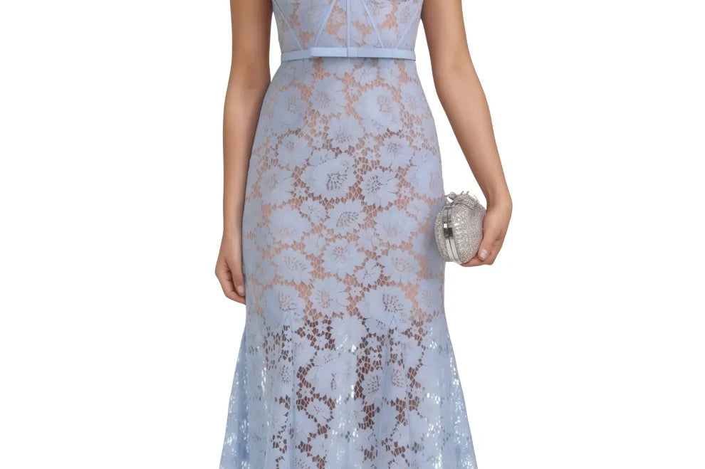 Xanea Square Neck Blue Lace Midi Dress