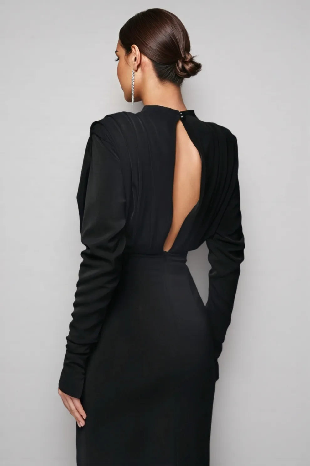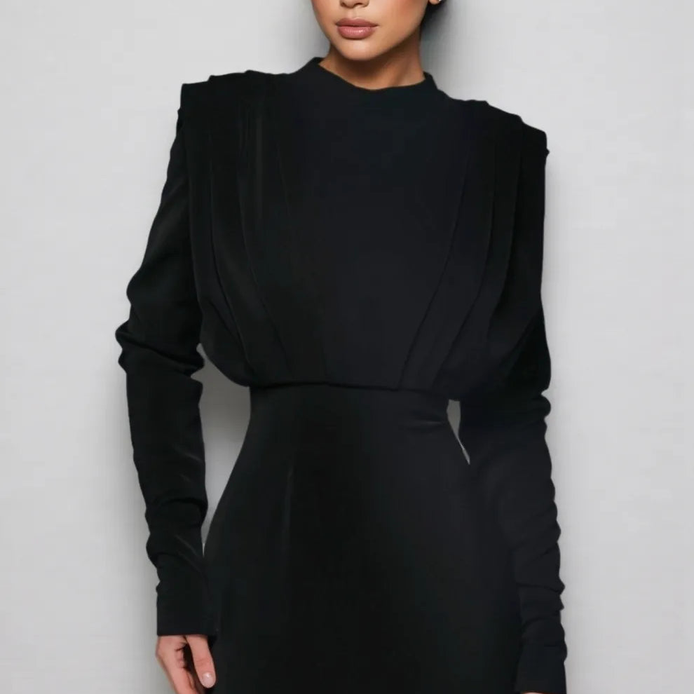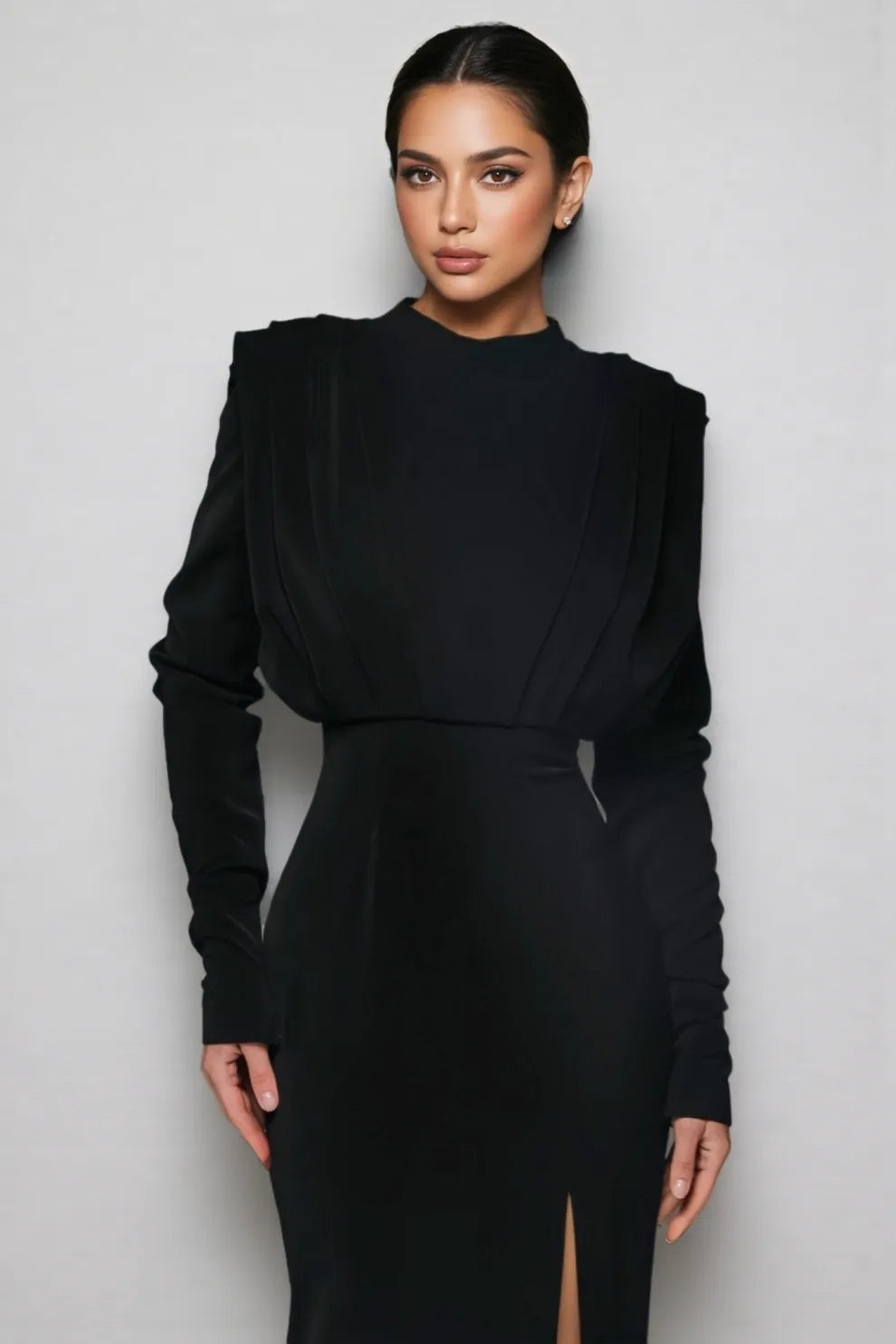 Irene High Neck Slit Maxi Dress-Black