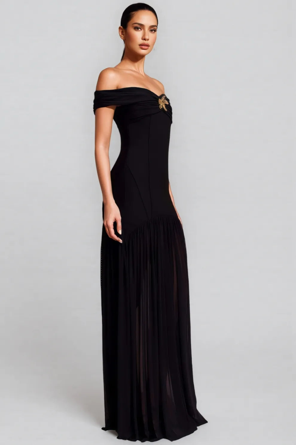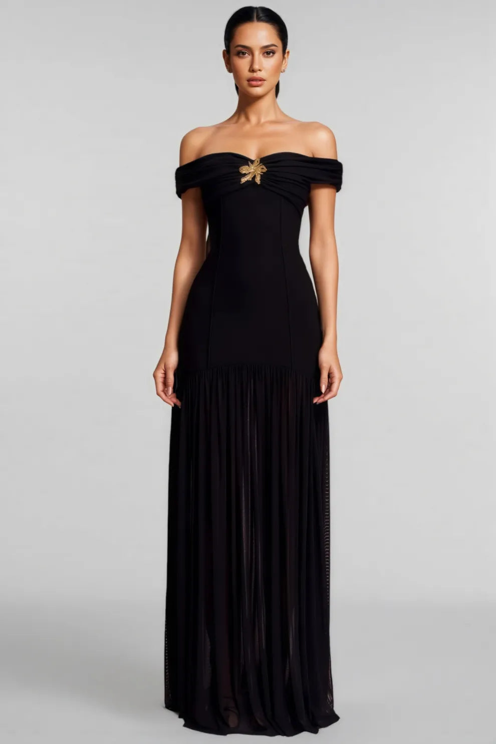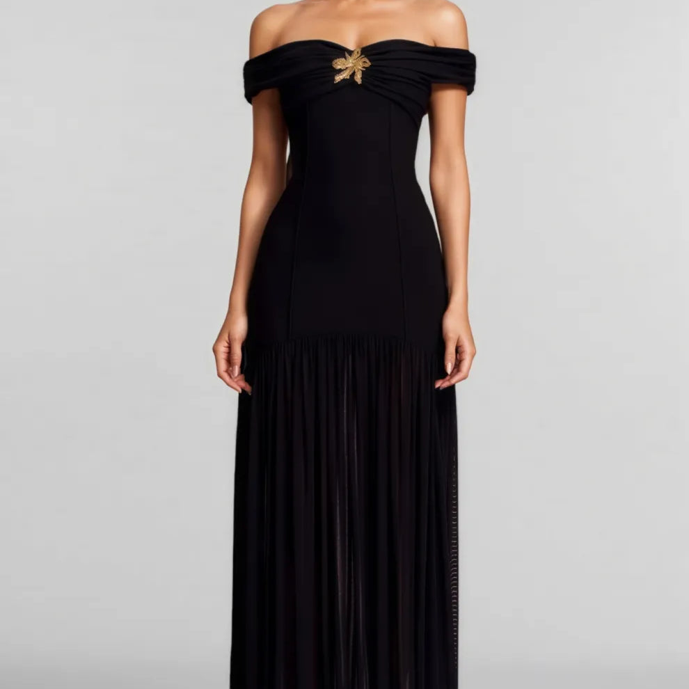 Dravert Black Mesh Backless Pleated Maxi Dress