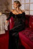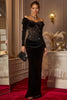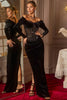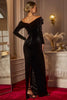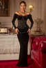 Miloni Off Shoulder Rhinestone Velvet Maxi Dress