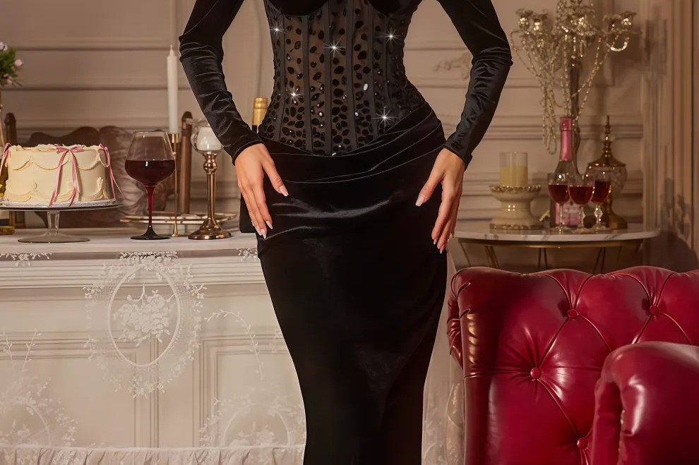 Finald Diamond Studded Maxi Dress Set