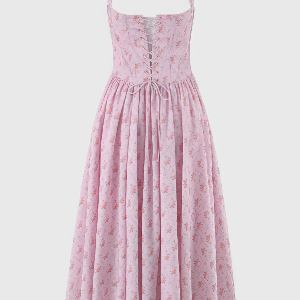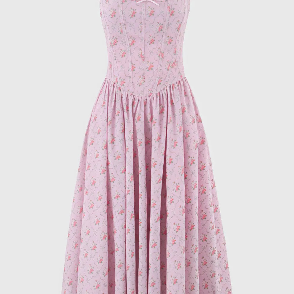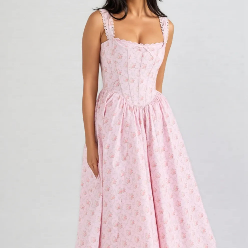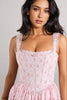 Arwent Pink Rose Print Stretch Cotton Midi Dress