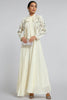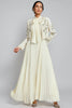 Ik wil een blije vrouw met een mooie jurk in beige achtergrond tinten