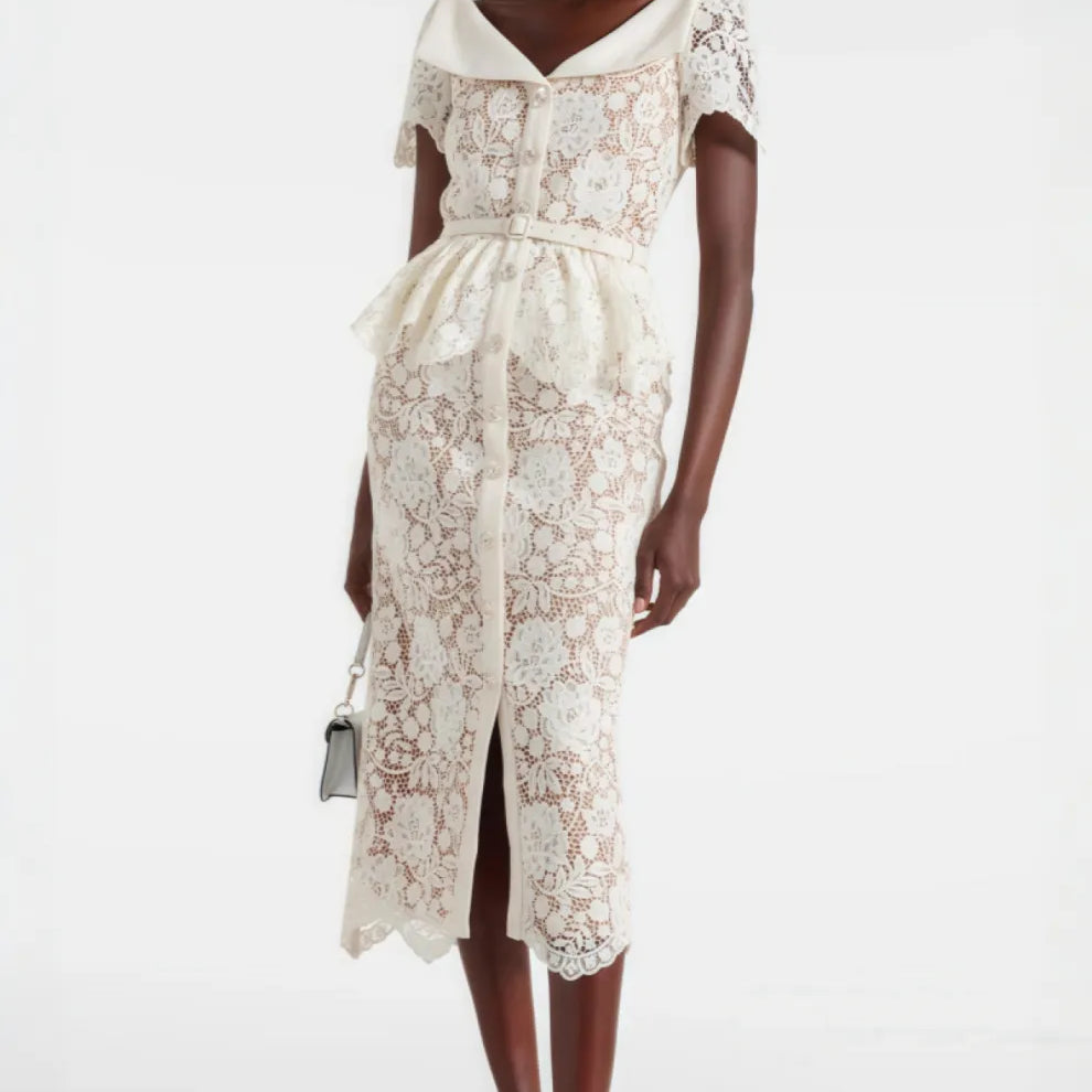 Quin Lace Rhinestone Bottom Midi Dress