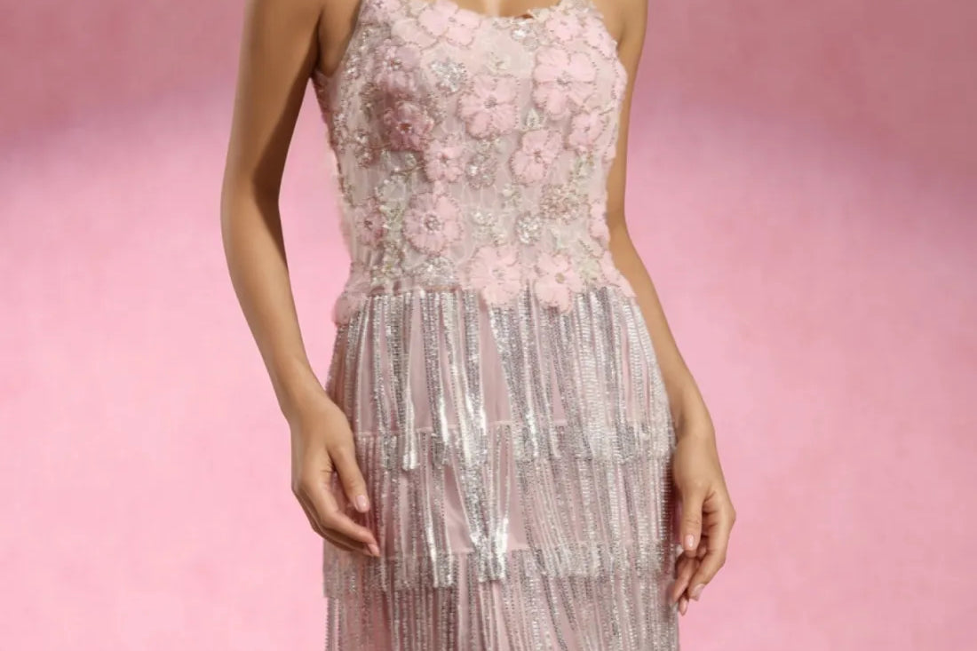 Paca Sleeveless Flowers Diamond Tassels Maxi Dress