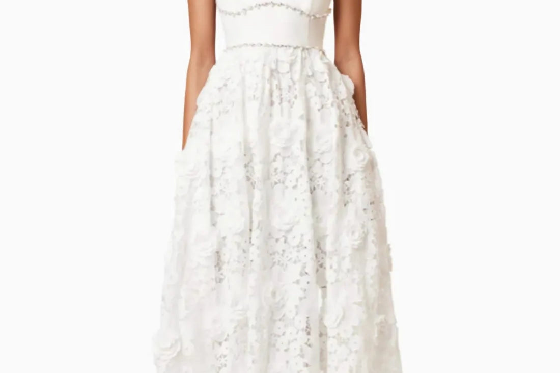 Saraho White Lace Midi Dress