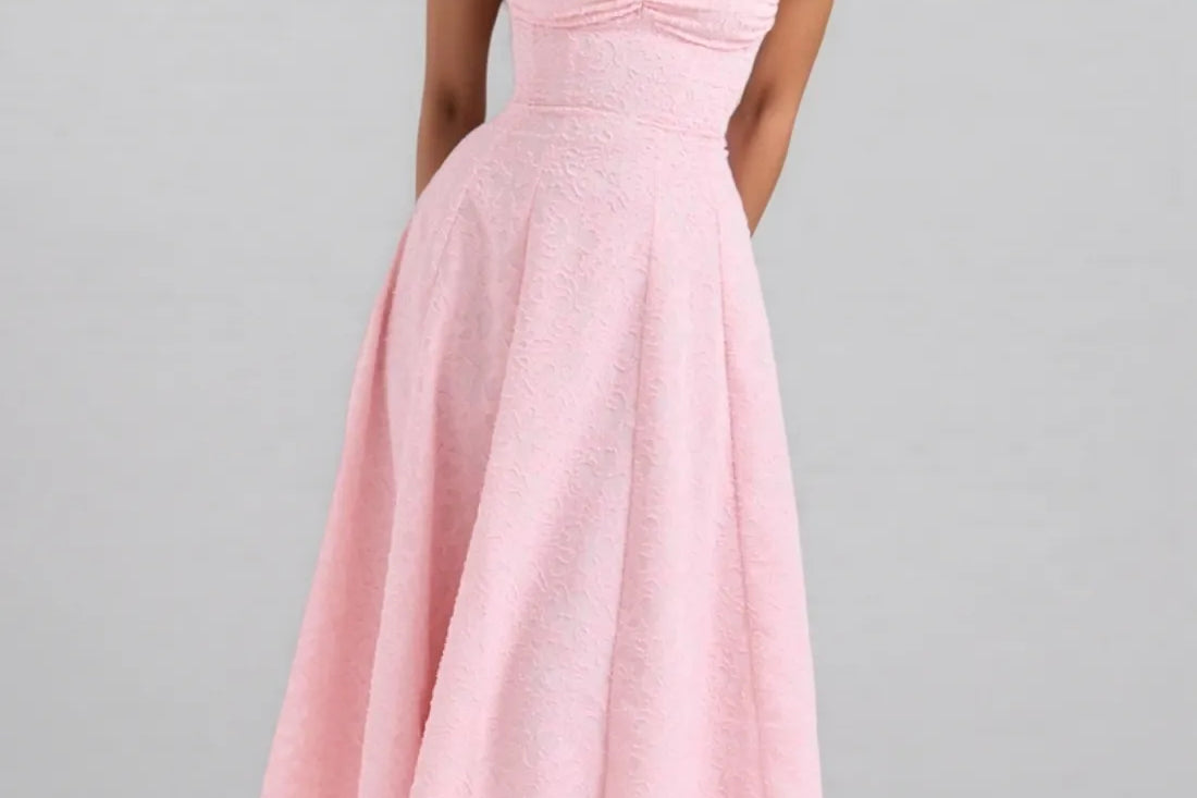 Kinsle Pink Floral Jacquard Midi Dress