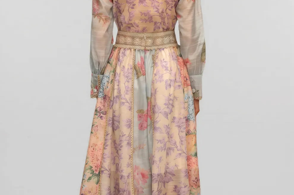Nylta Pink Floral Chiffon Midi Dress