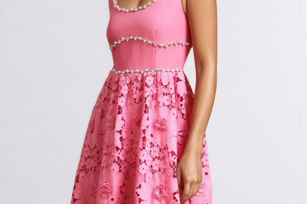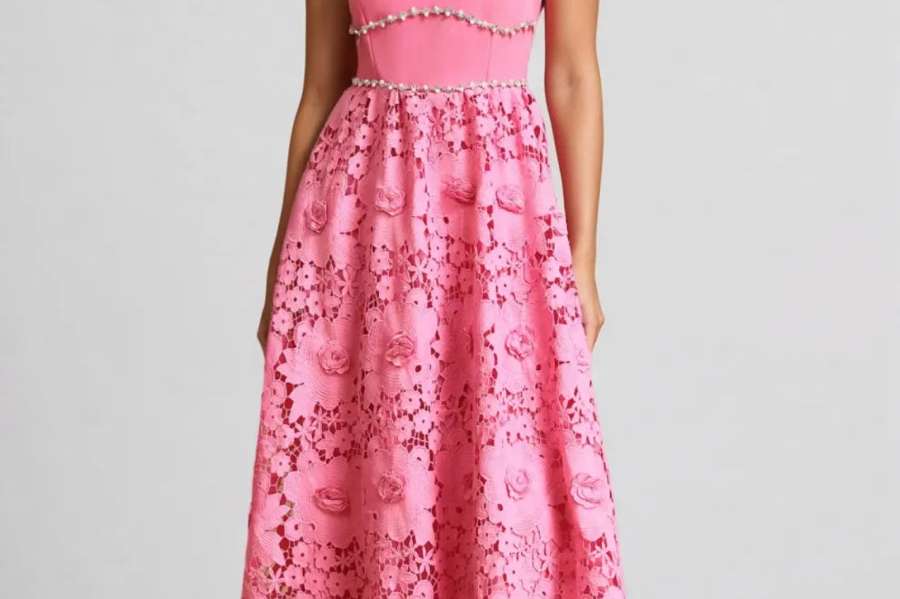 Eileen Pink Floral Lace Midi Dress Set
