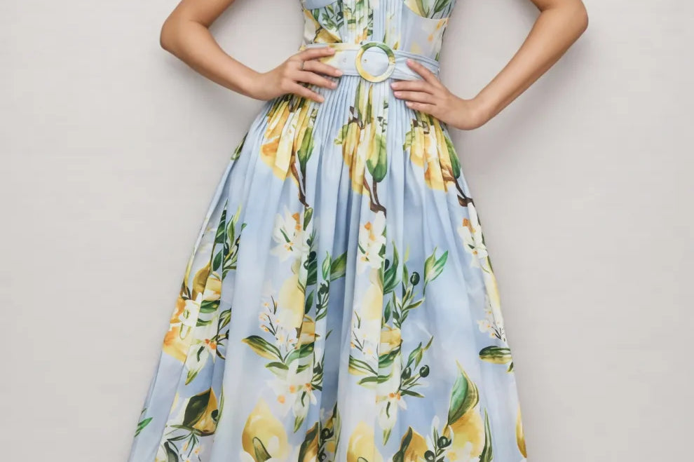 Paca Lemon Print Spaghetti Strap Maxi Dress