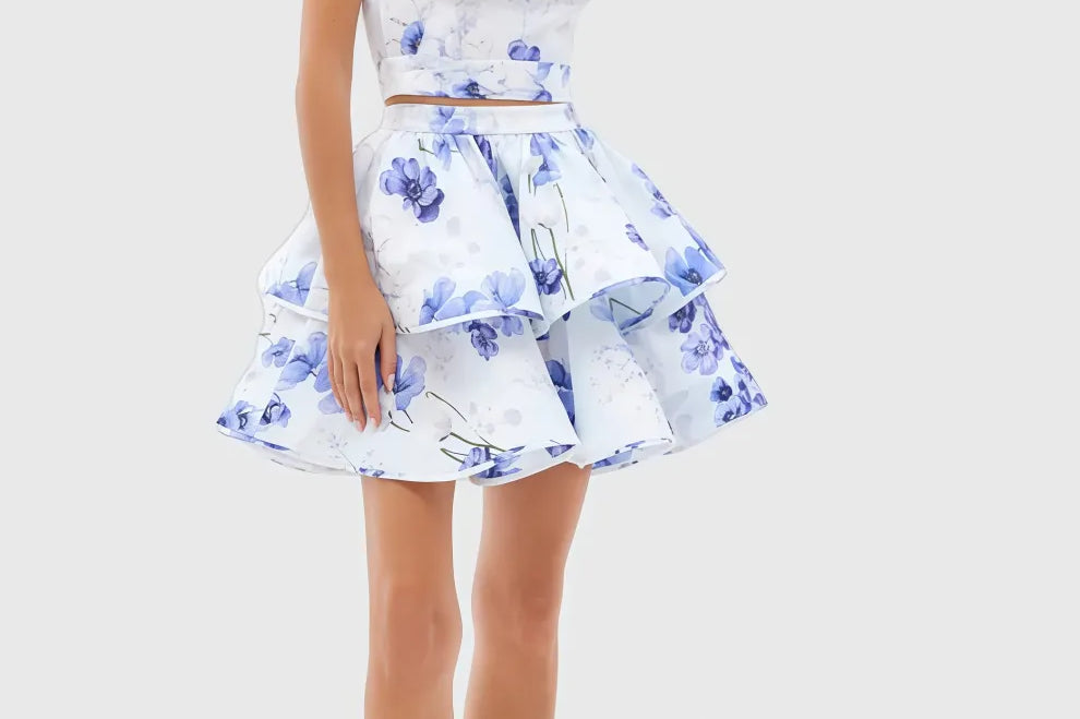 Nyssry Blue Printed Backless Mini Dress Set