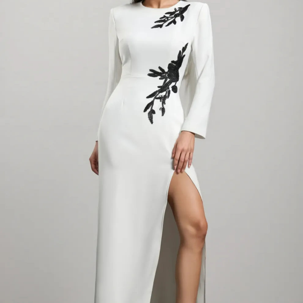 Kadence Long Sleeves Beaded String Split Maxi Dress