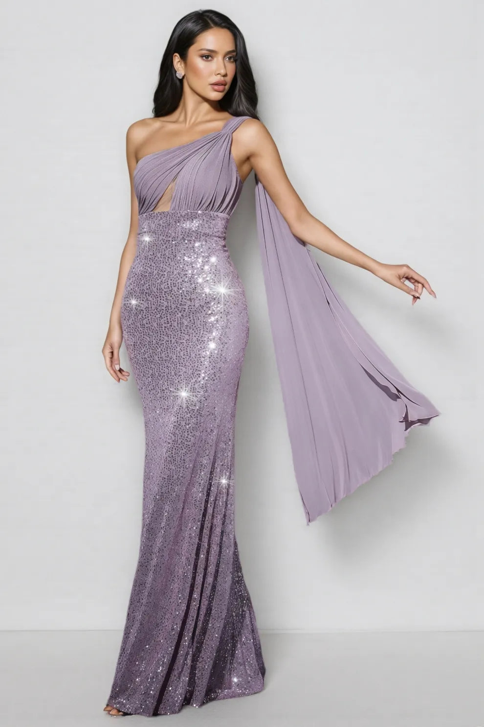 Nani Purple Sequin Fishtail Maxi Dress