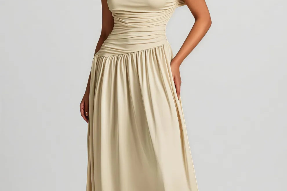 Ildrak One Shoulder Ruched Maxi Dress