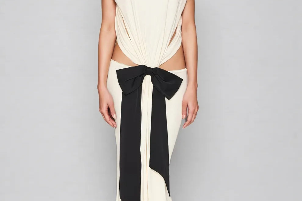 Gaelyra White Backless Satin Pleated Maxi Dress
