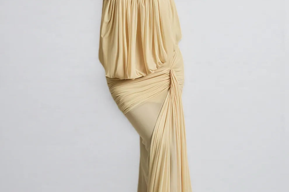 Gaelthis Strapless Ruched Draped Maxi Dress