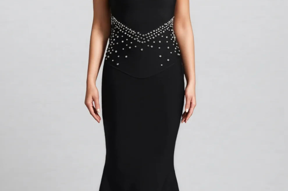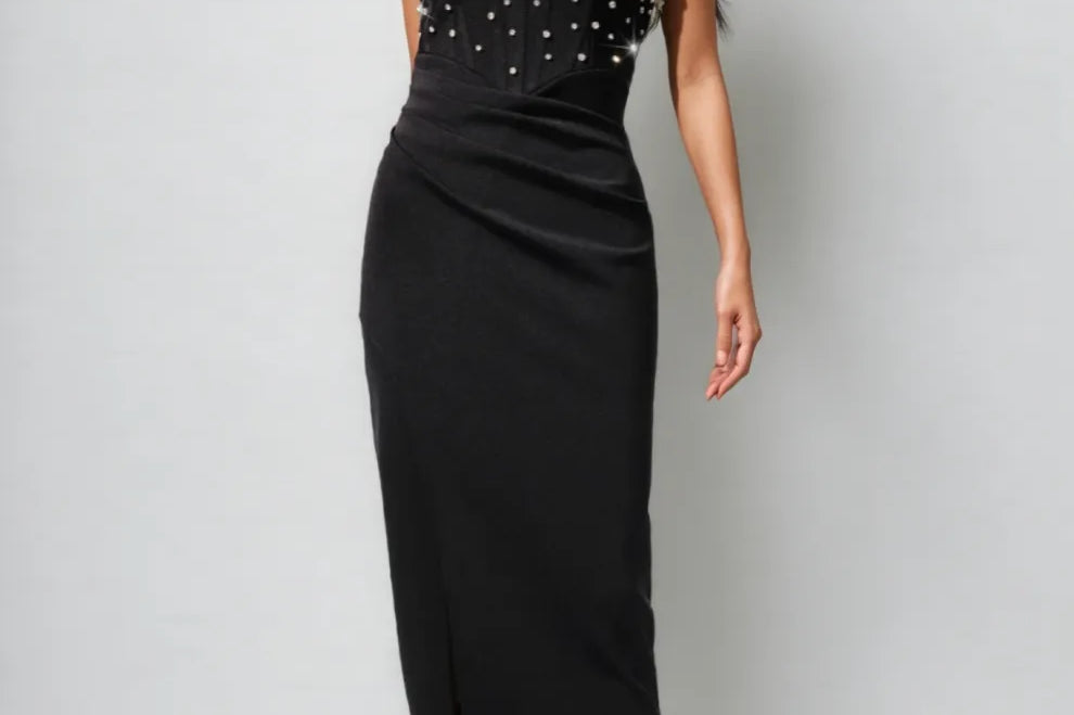 Miley Black Embellished Skinny Cut Maxi Dress