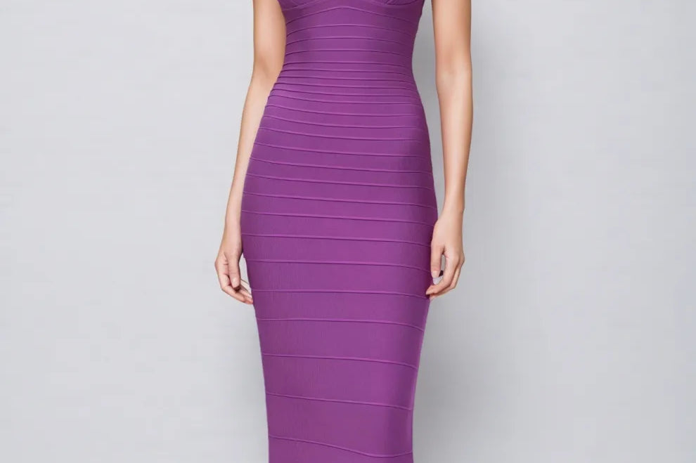 Katrina Purple Bandage Wrap Maxi Dress