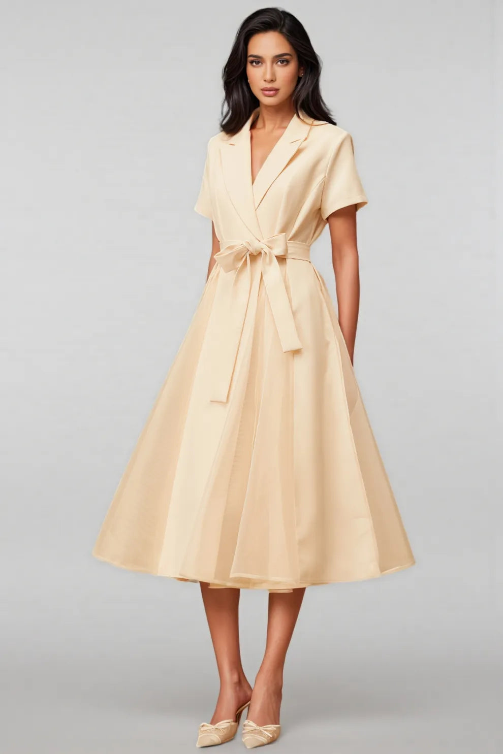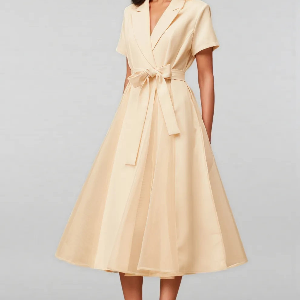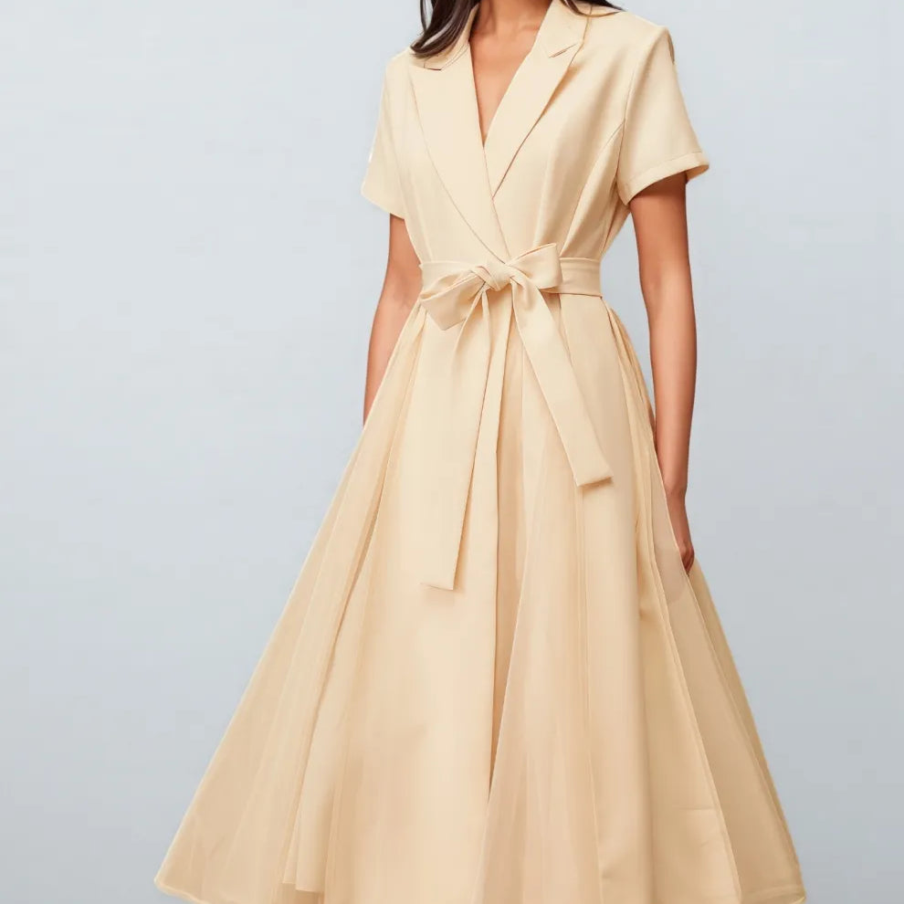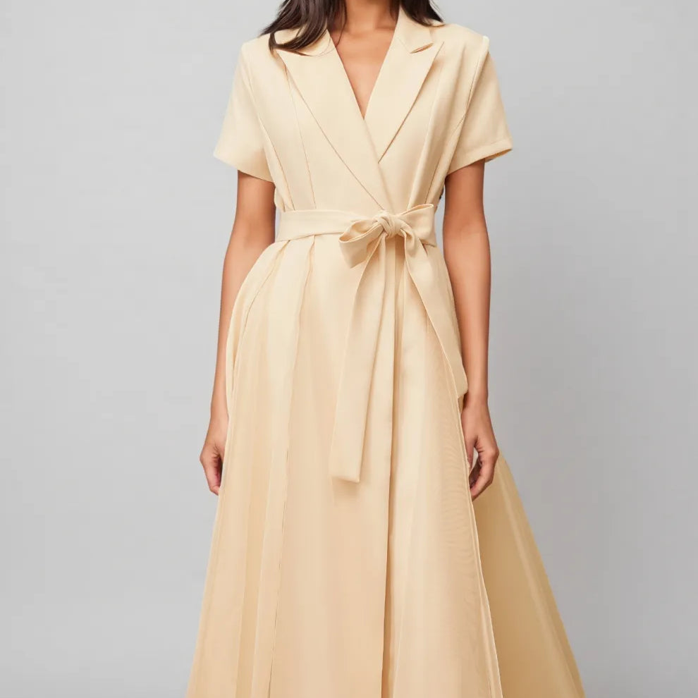Ivonne Neutral Tulle Panel Wraped Midi Dress