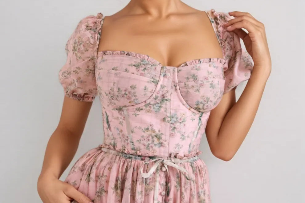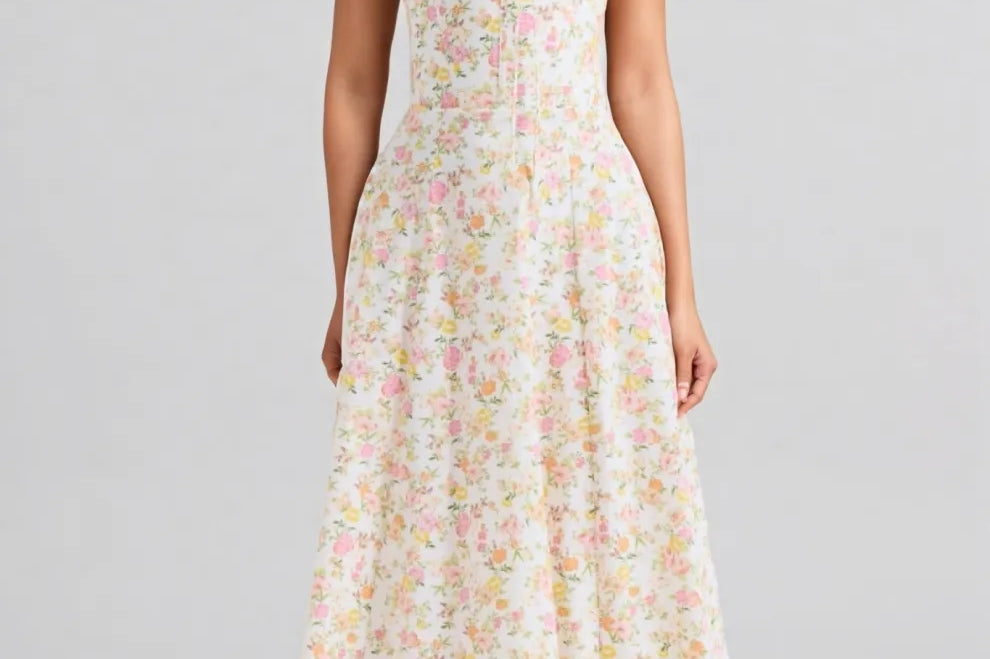 Larkt Meadow Floral Print Cotton Bustier Midi Dress