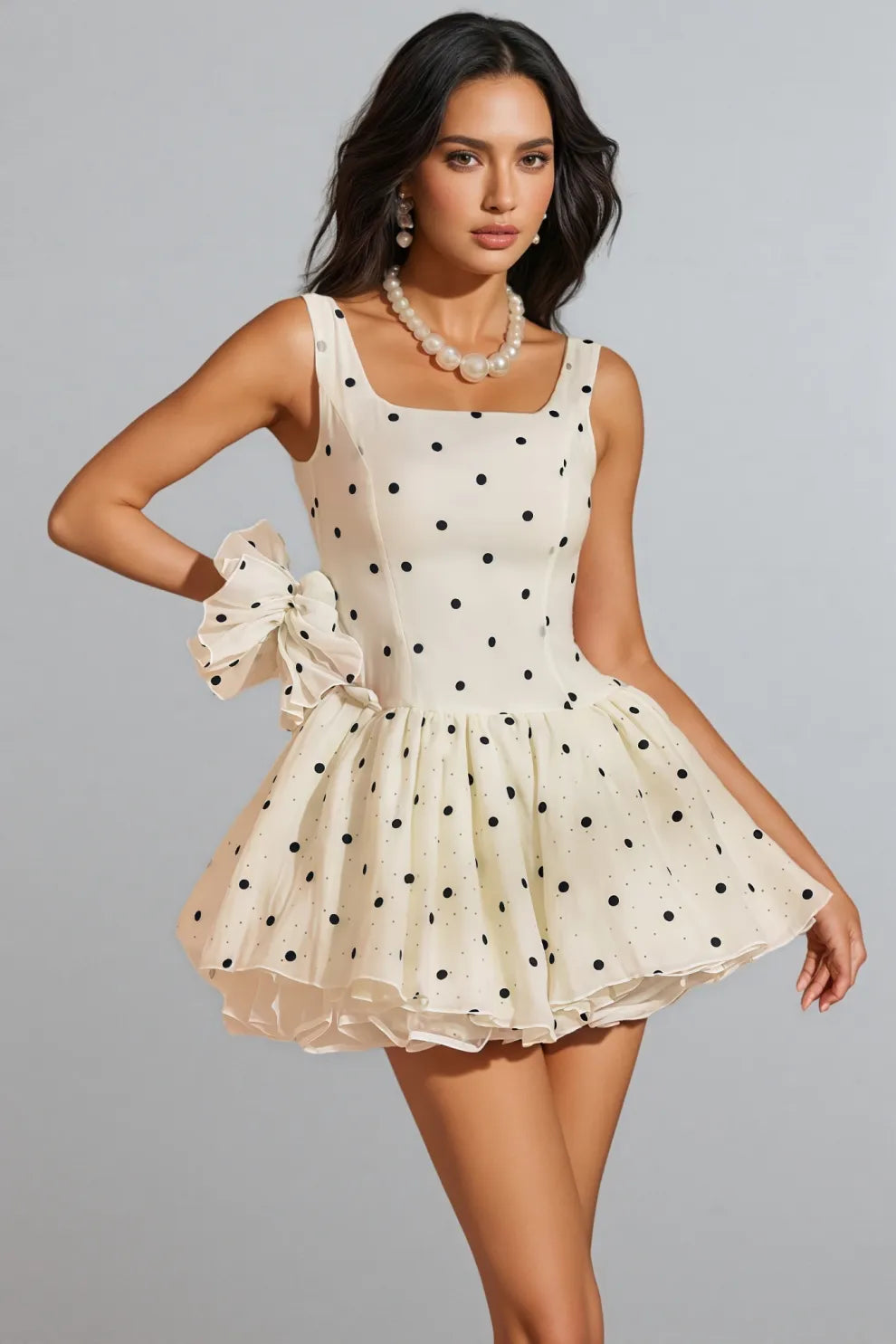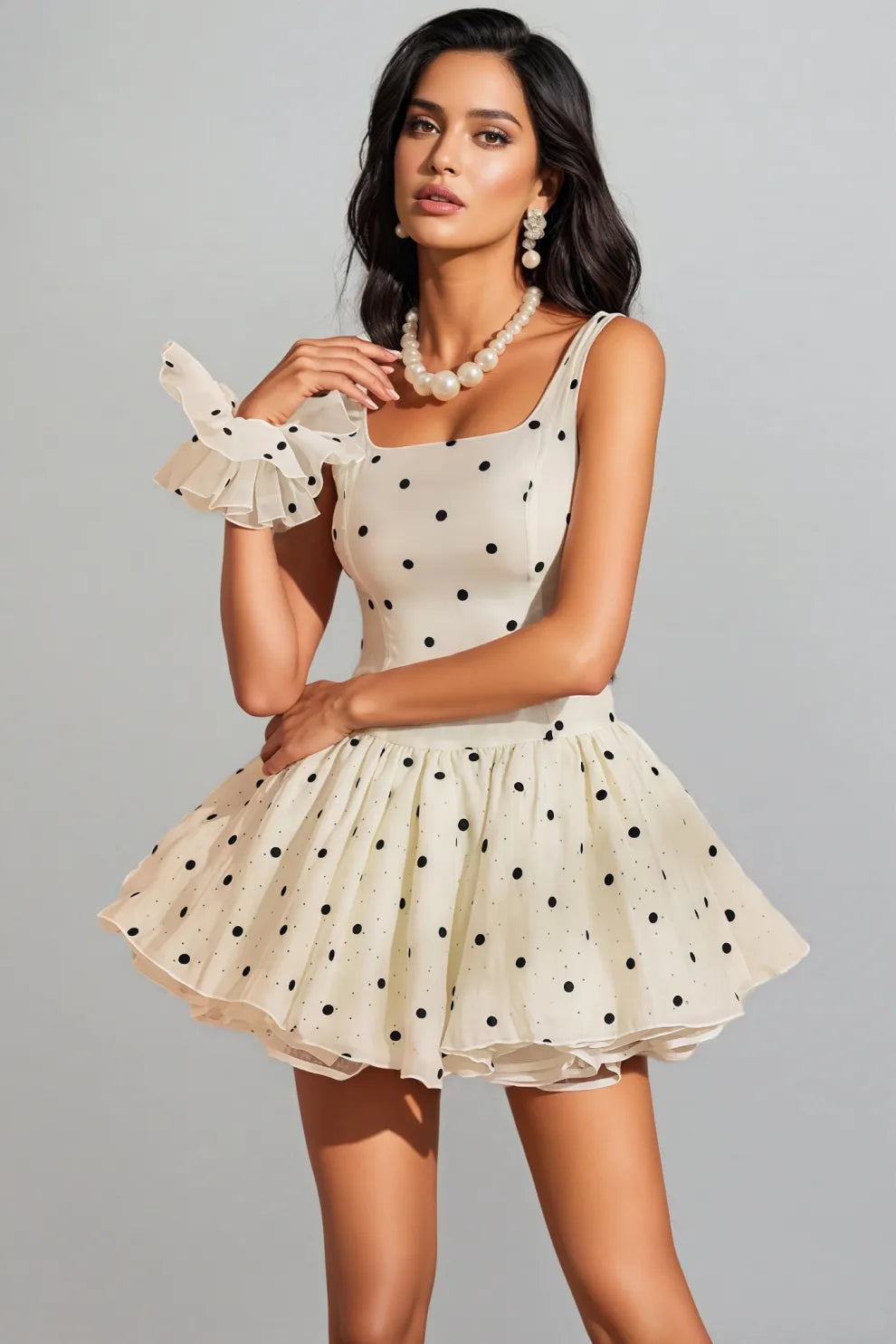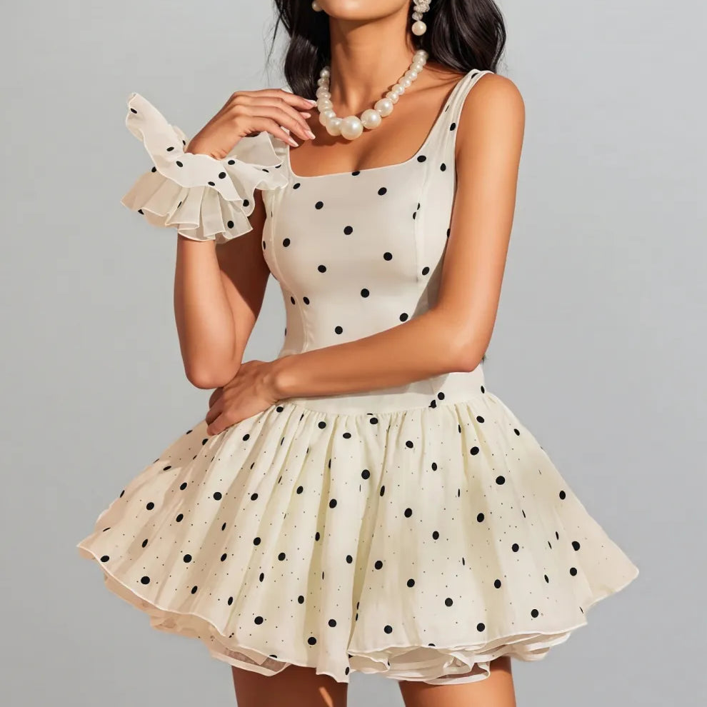 Ik wil een blije vrouw met een mooie jurk in beige achtergrond tinten