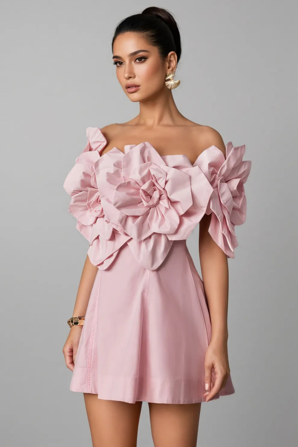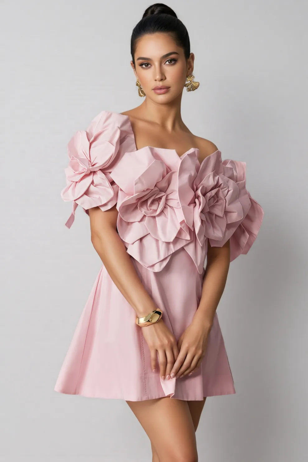 Huta Oversized Floral Applique Mini Dress