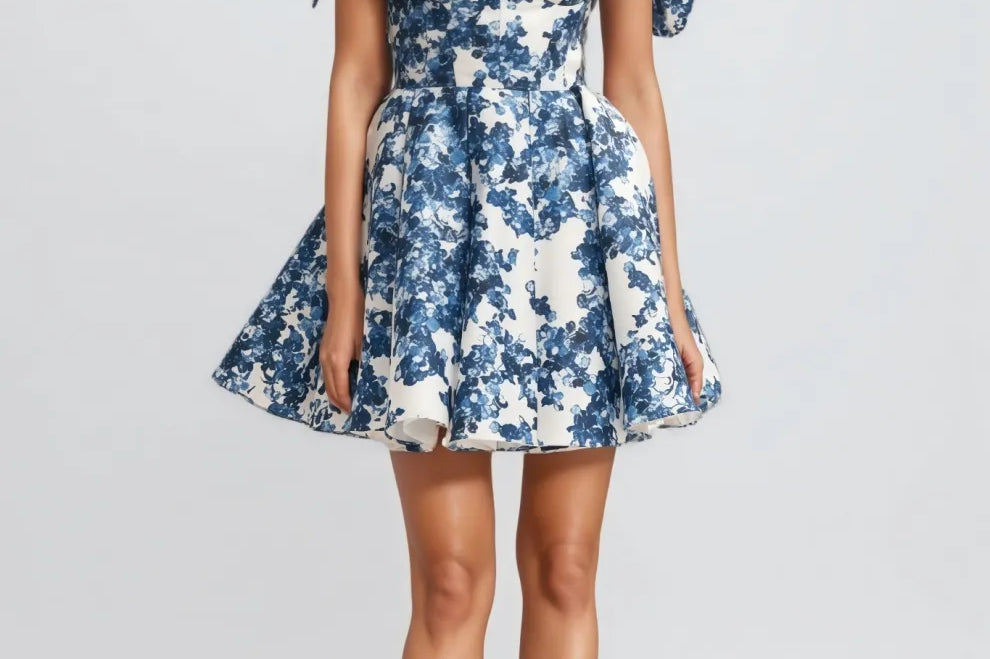Jacetk Blue Hydrangea Floral Mini Dress
