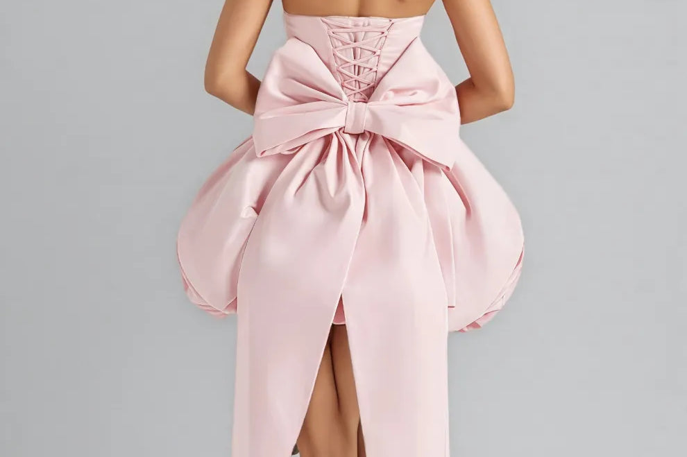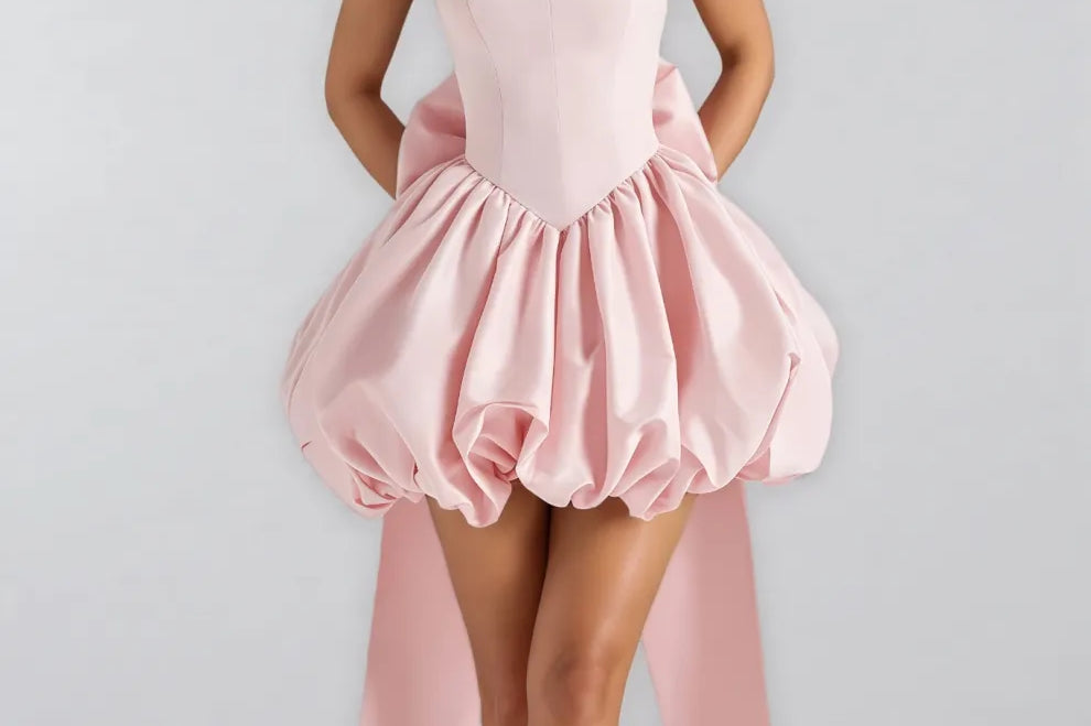 Cordt Pink Bow Halter Lantern Mini Dress