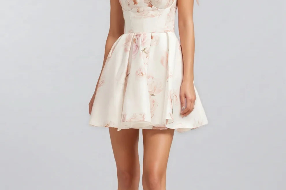 Zinat Beige Pink Floral Mini Dress