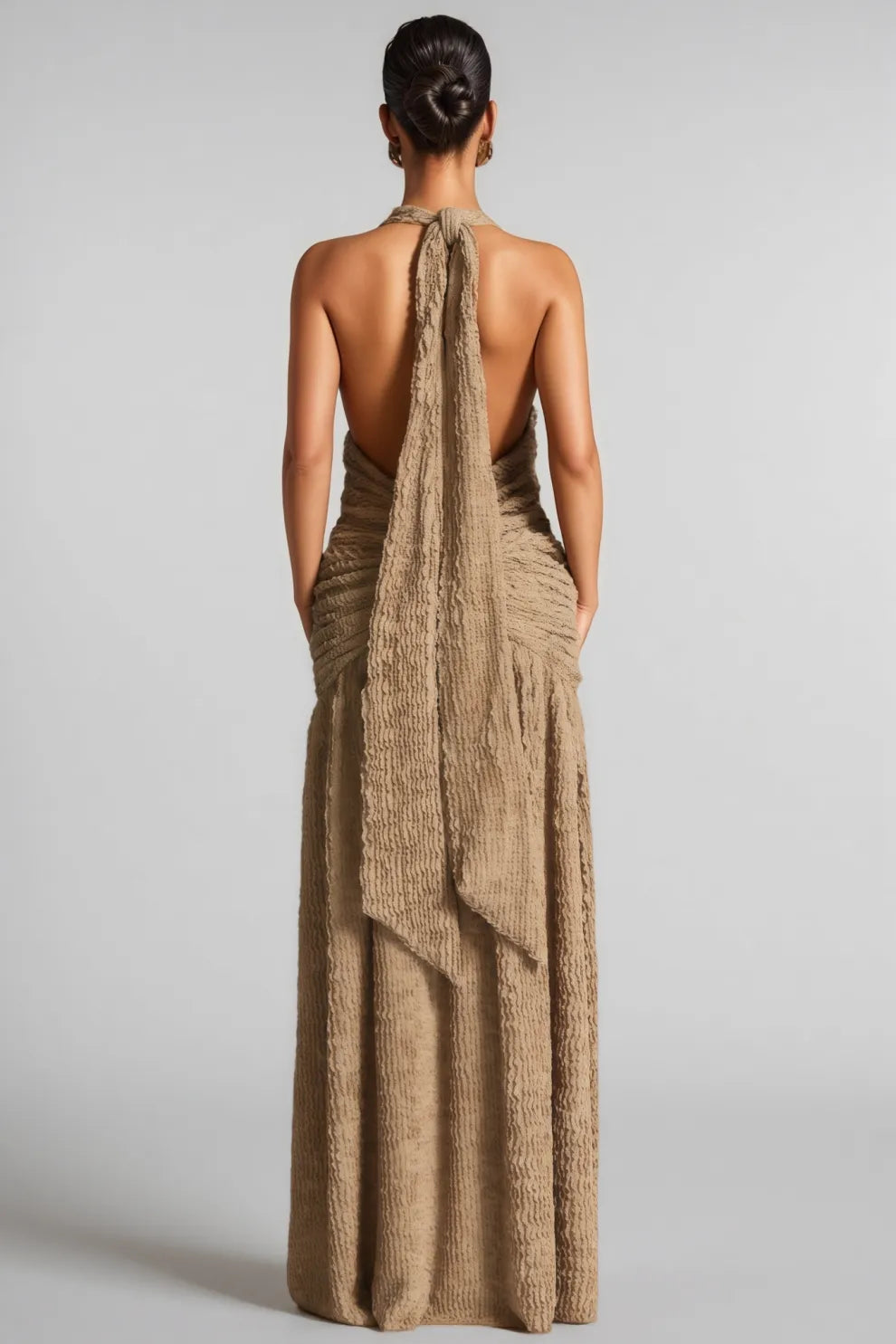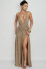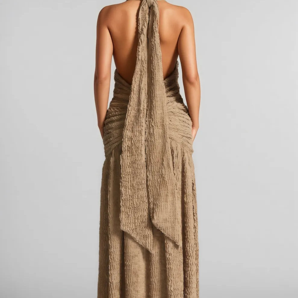 Secyij Khaki High-Slit Backless Maxi Dress