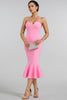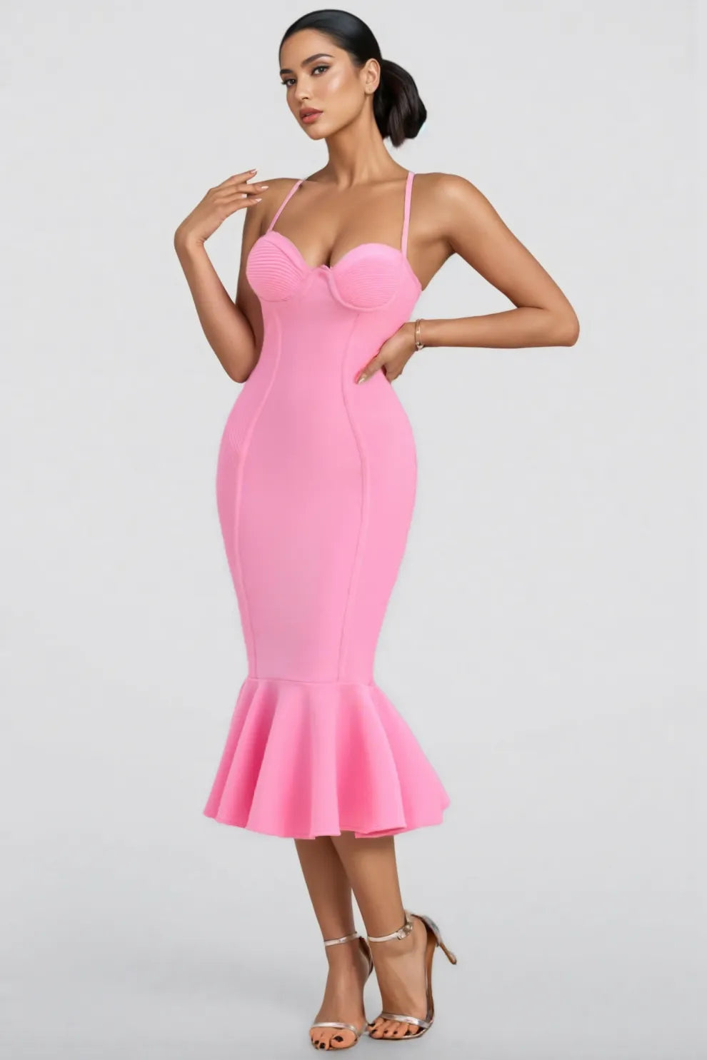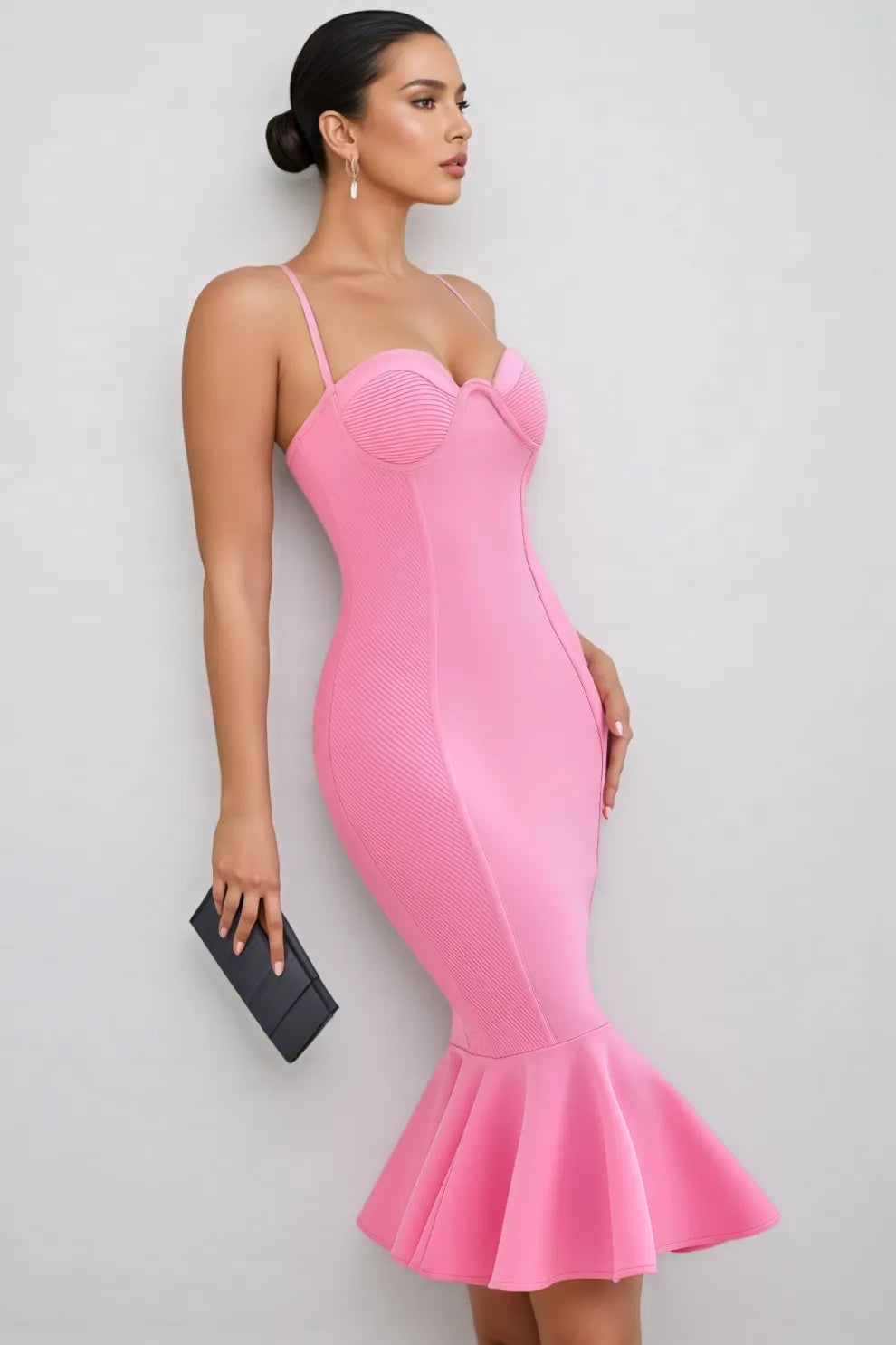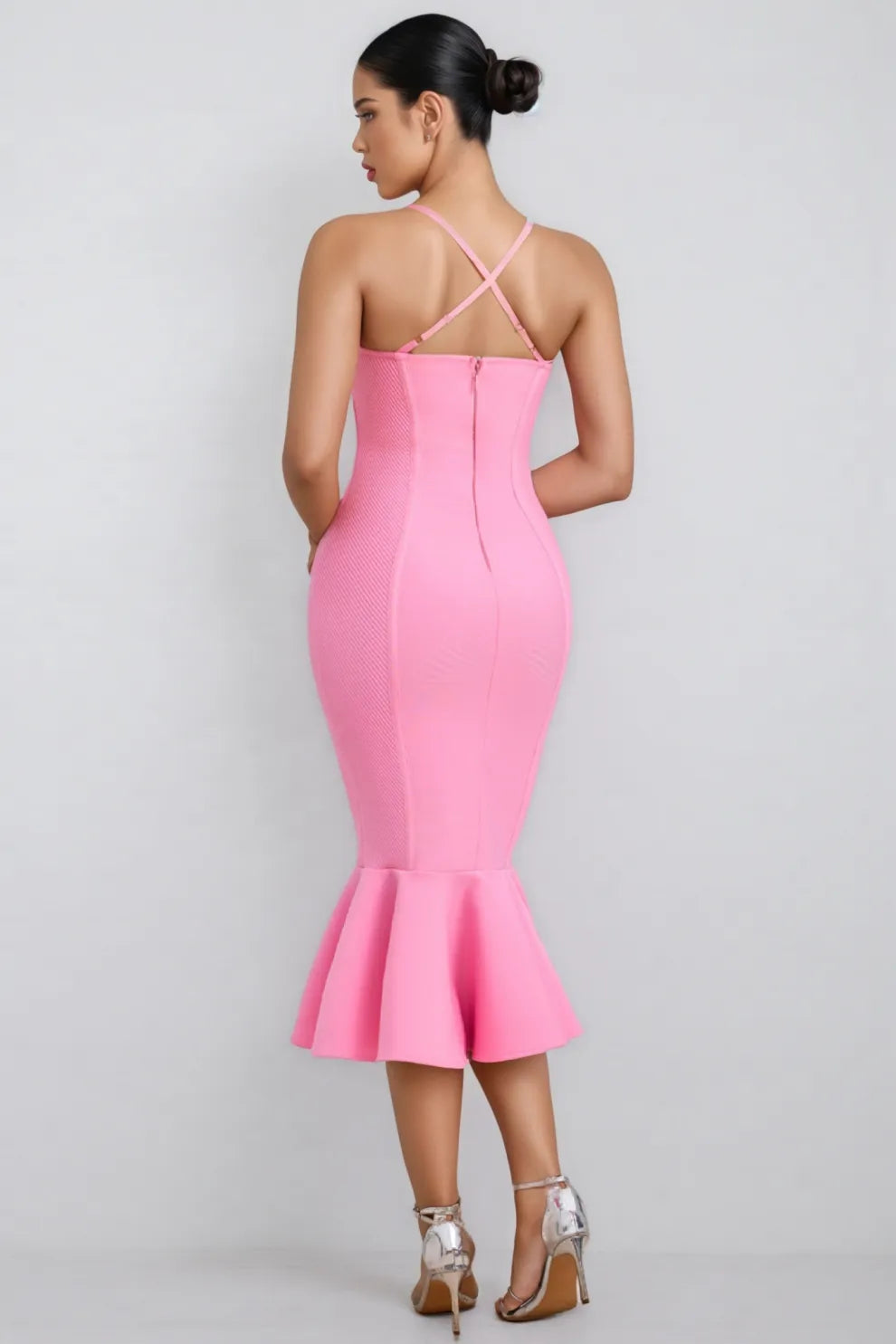 Viviana Pink Strappy Fishtail Bandage Midi Dress