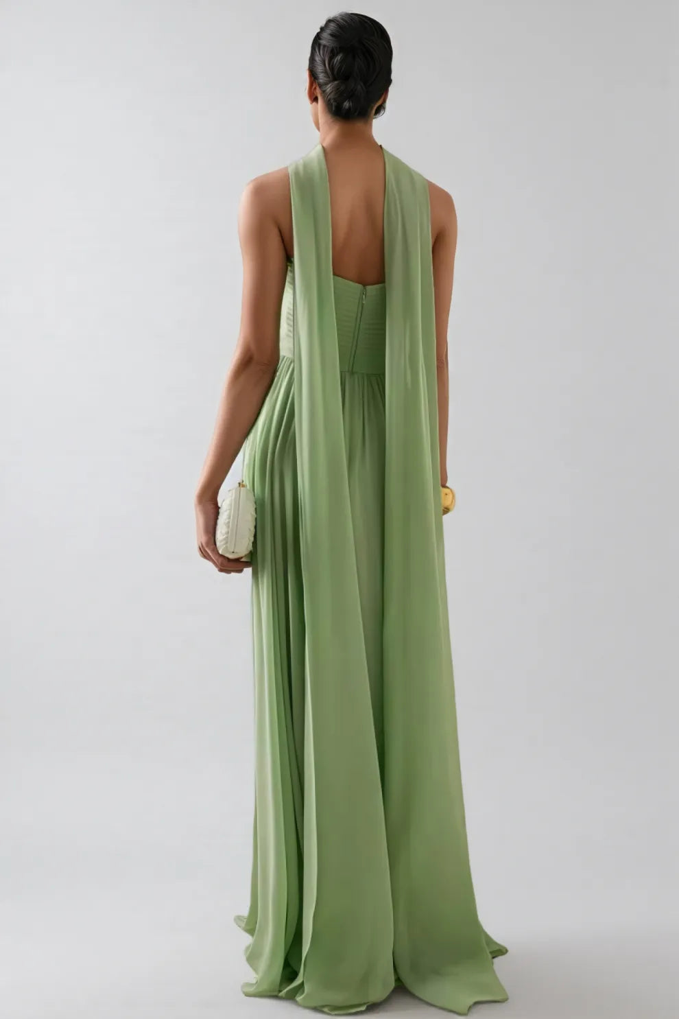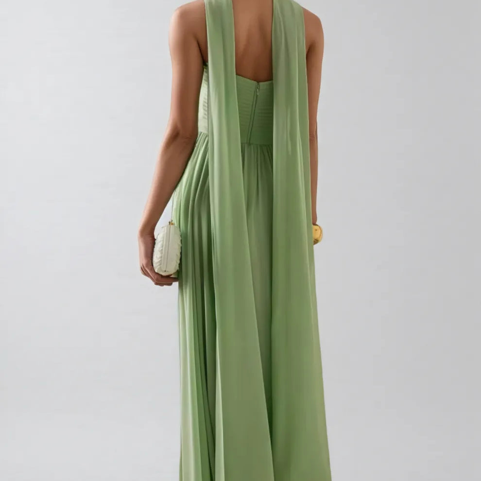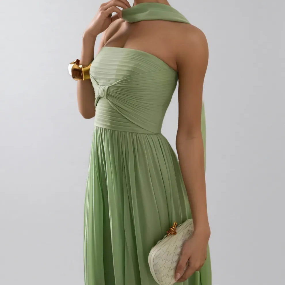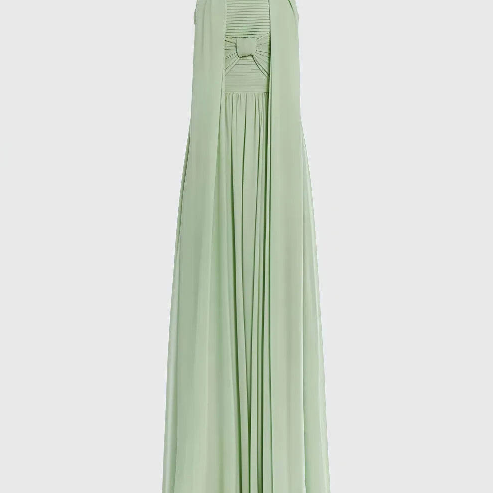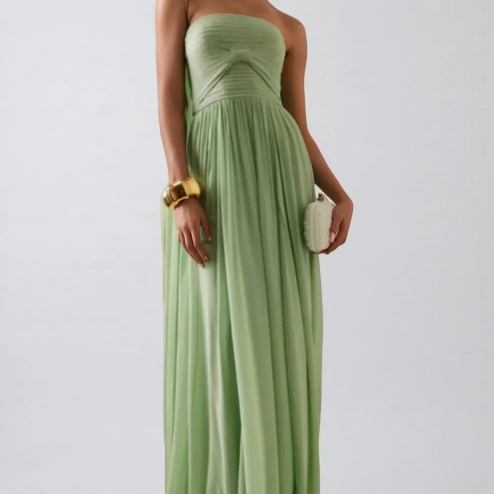 Bellke Green Pleated Strapless Maxi Dress