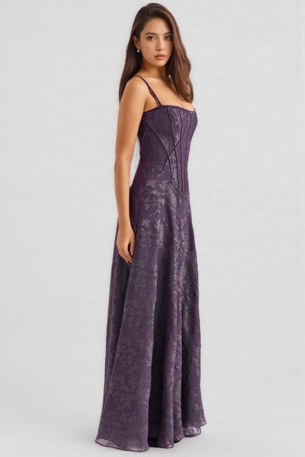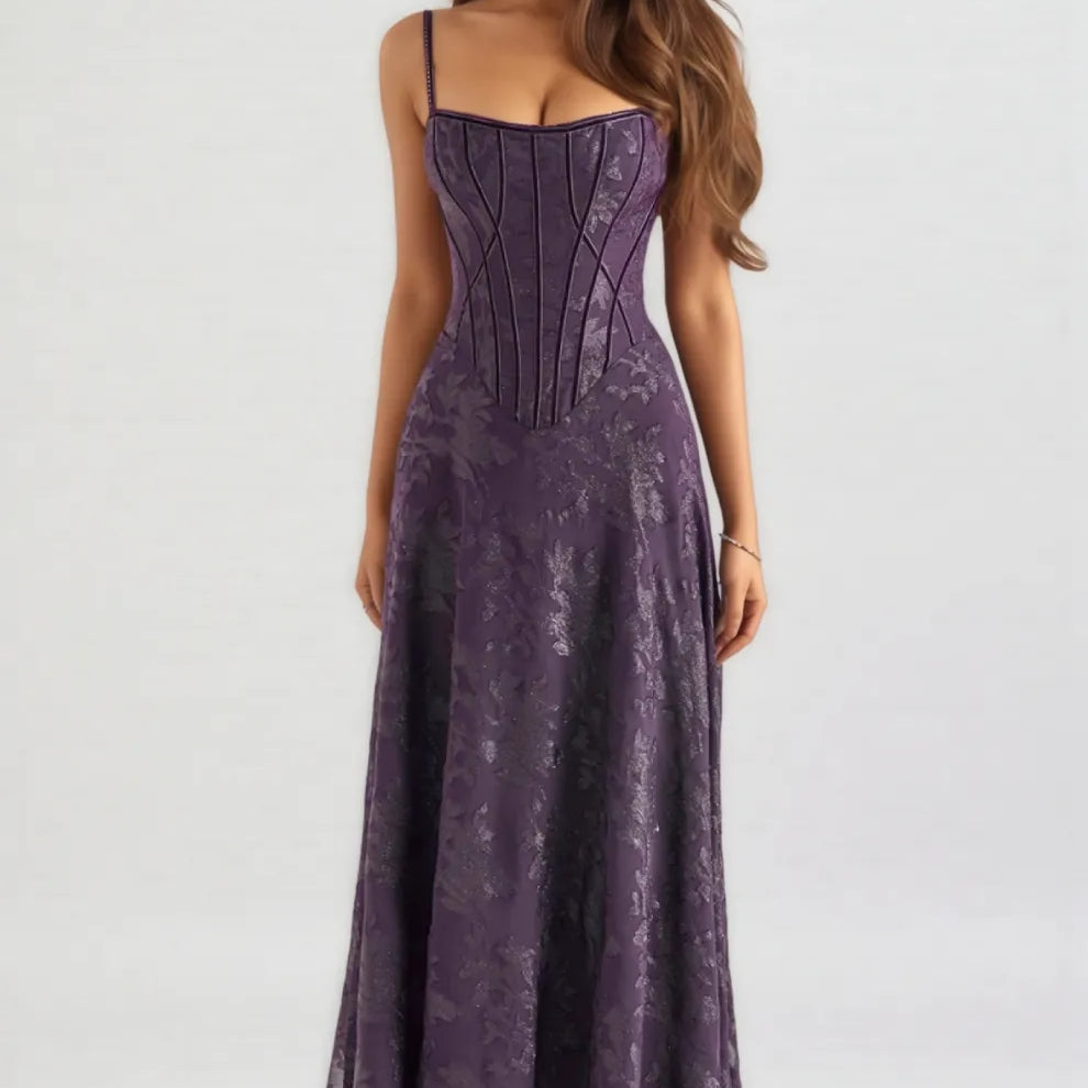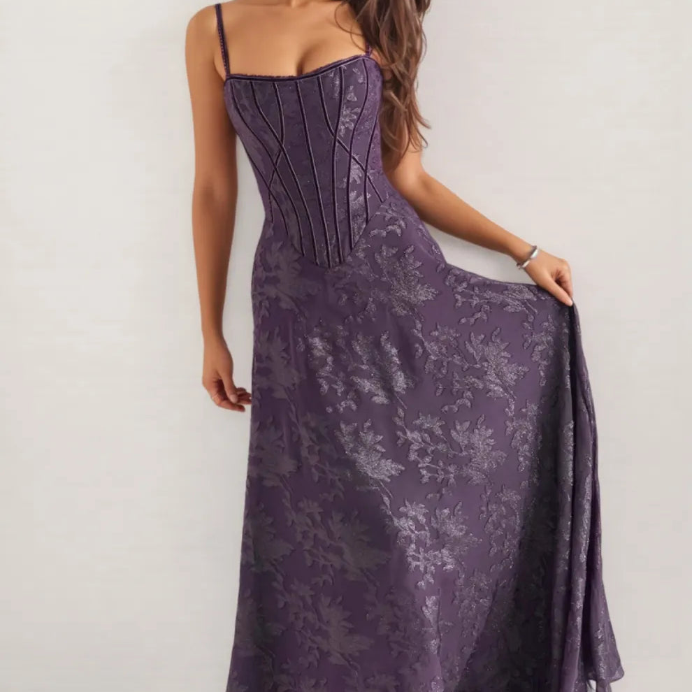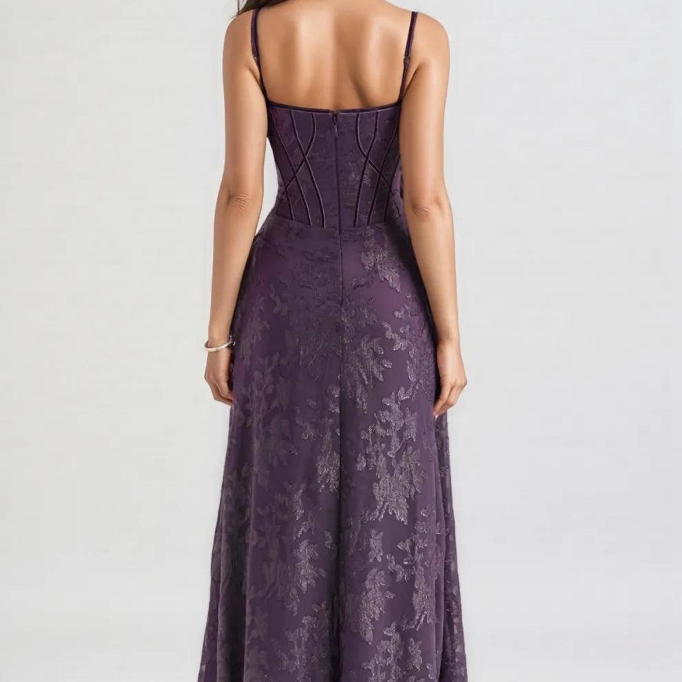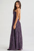Celeste Purple Sequin Flower Lace Maxi Dress