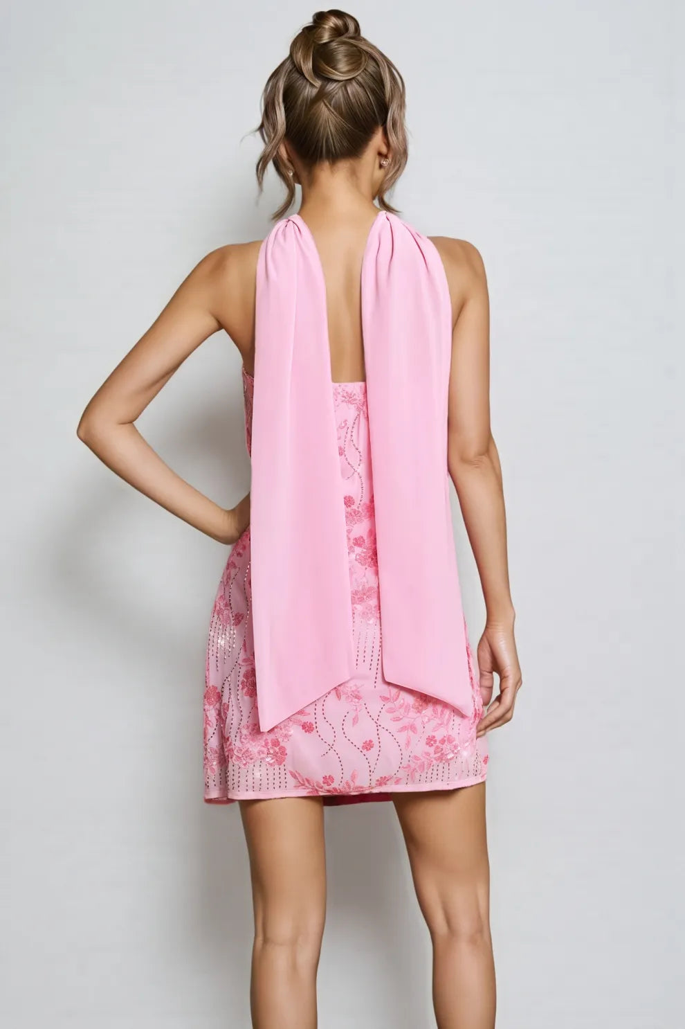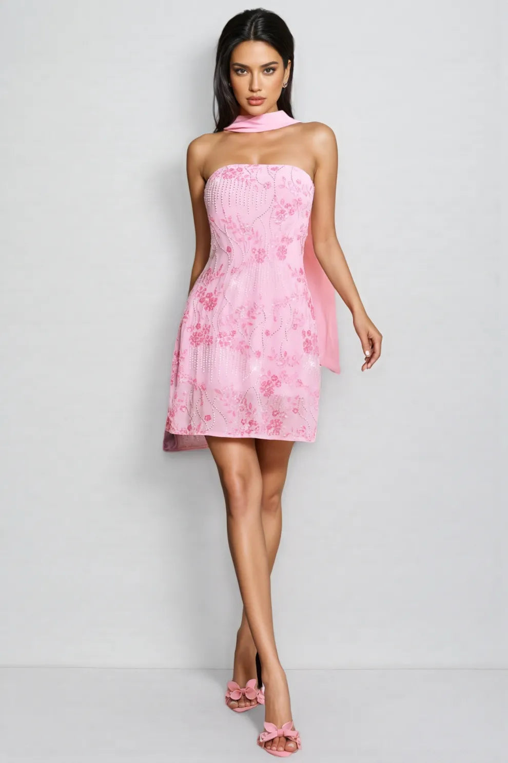 Corviel Floral Sequin Scarf Mini Dress