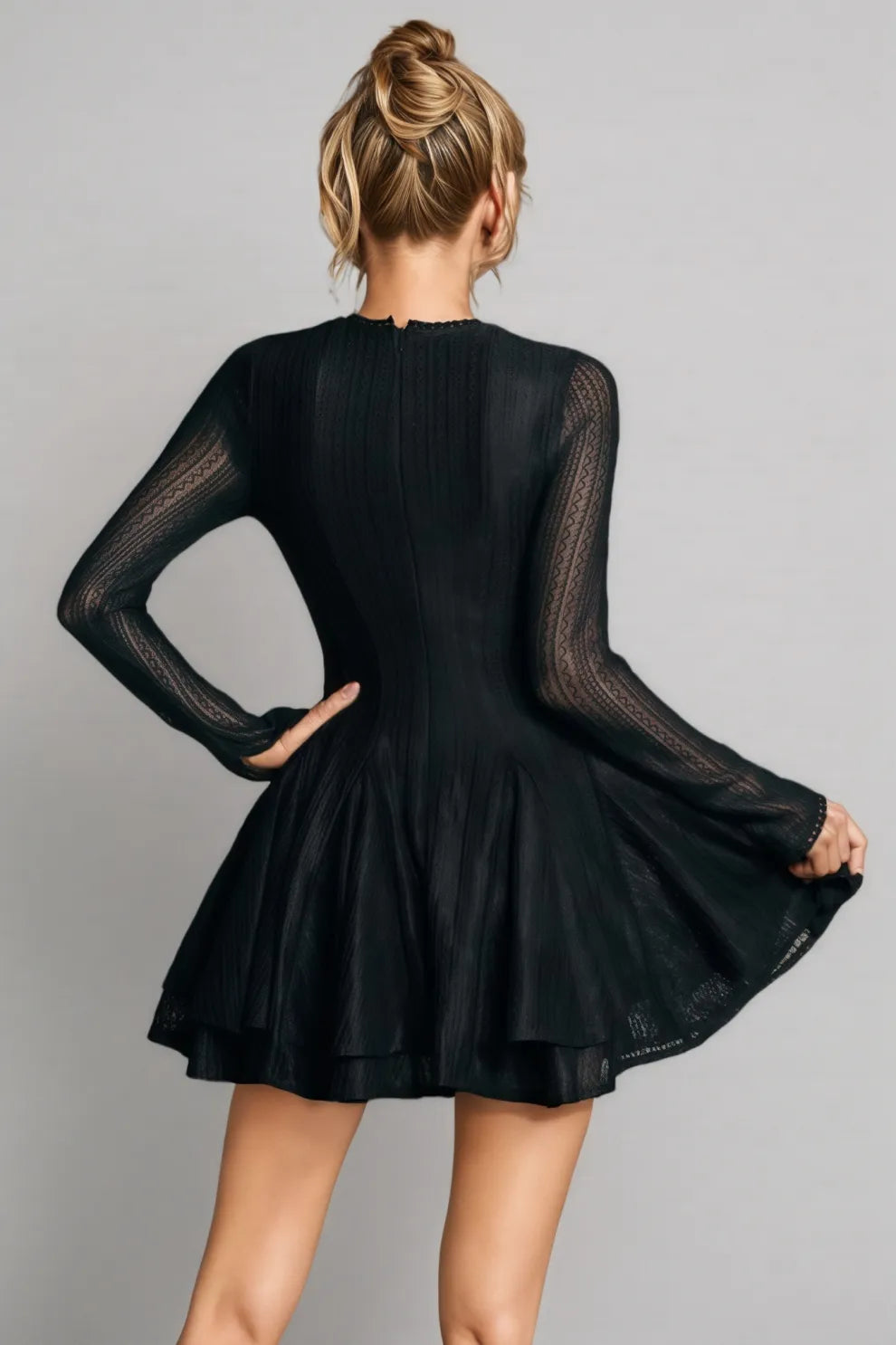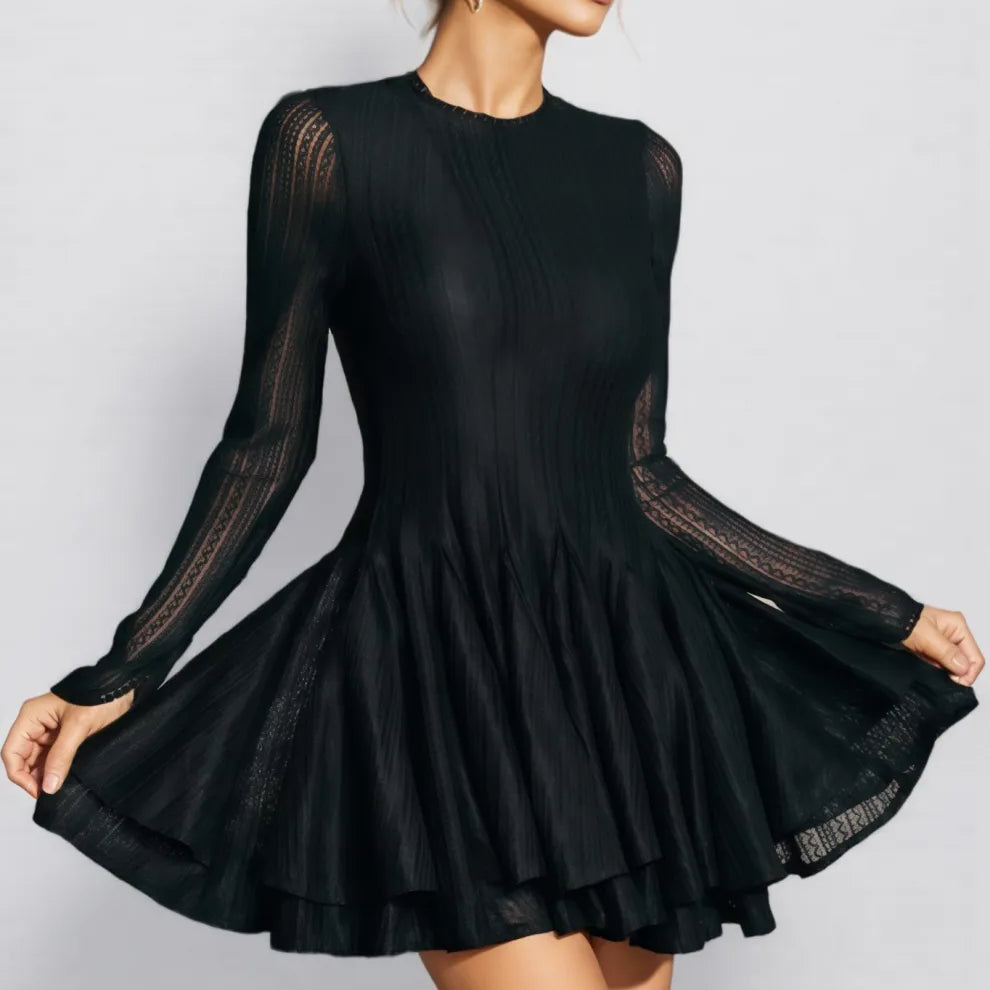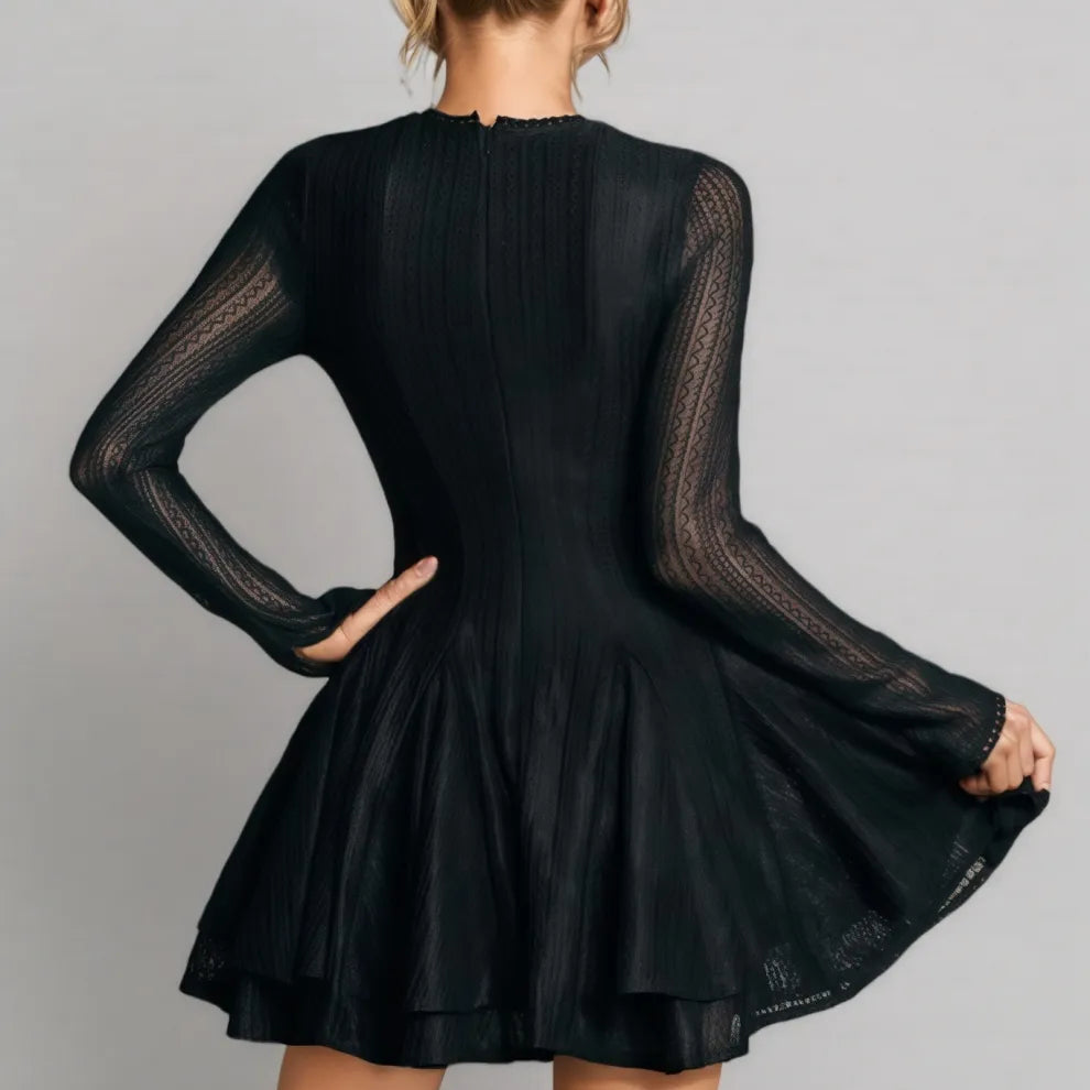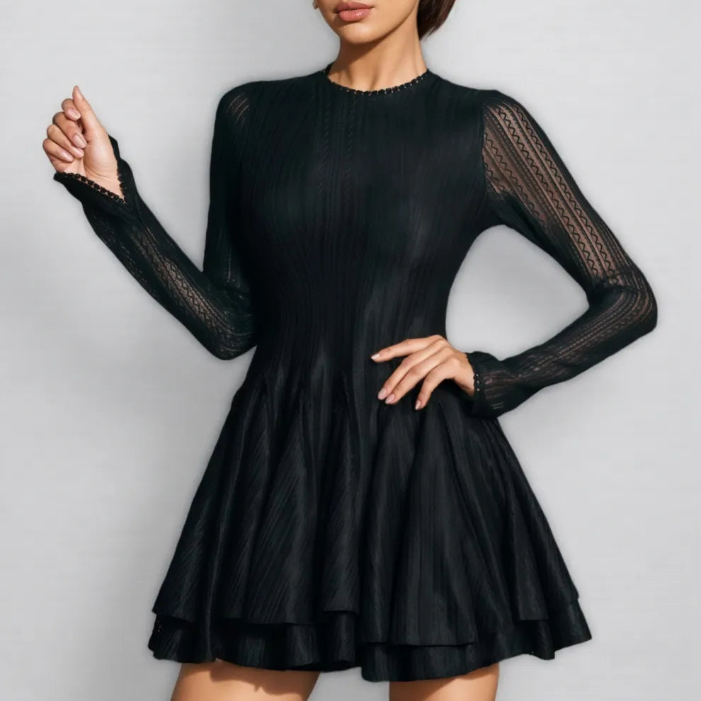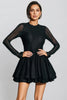 Cryon Black Long Sleeve Ruffle Mini Dress
