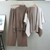 Dames 3-delig gebreid pak – Relaxed Fit – Coltrui – Wijde broek – Open cape